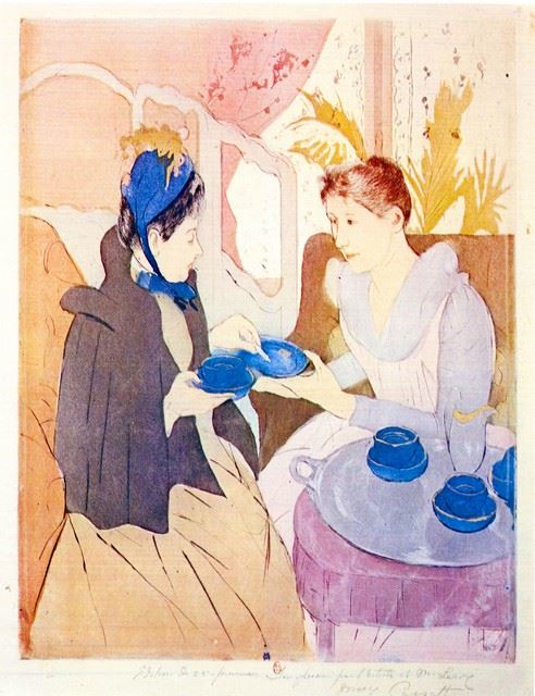Artist: Mary Stevenson Cassatt (b. 1844 - 1926) Title: Tea In The Afternoon Medium: Fine Art Reproduction Giclee on Canvas Image Size: Approximately 20 inches x 15.5 inches Unframed on Unstretched Canvas Birography: Born on May 22, 1844, in Allegheny City, Pennsylvania, Mary Cassatt was one of the leading artists in the Impressionist movement of the later part of the 1800s. Moving to Paris, her home for the rest of her life, she was befriended by Edgar Degas. After 1910, her increasingly poor eyesight virtually put an end to her serious painting, and she died in 1926.