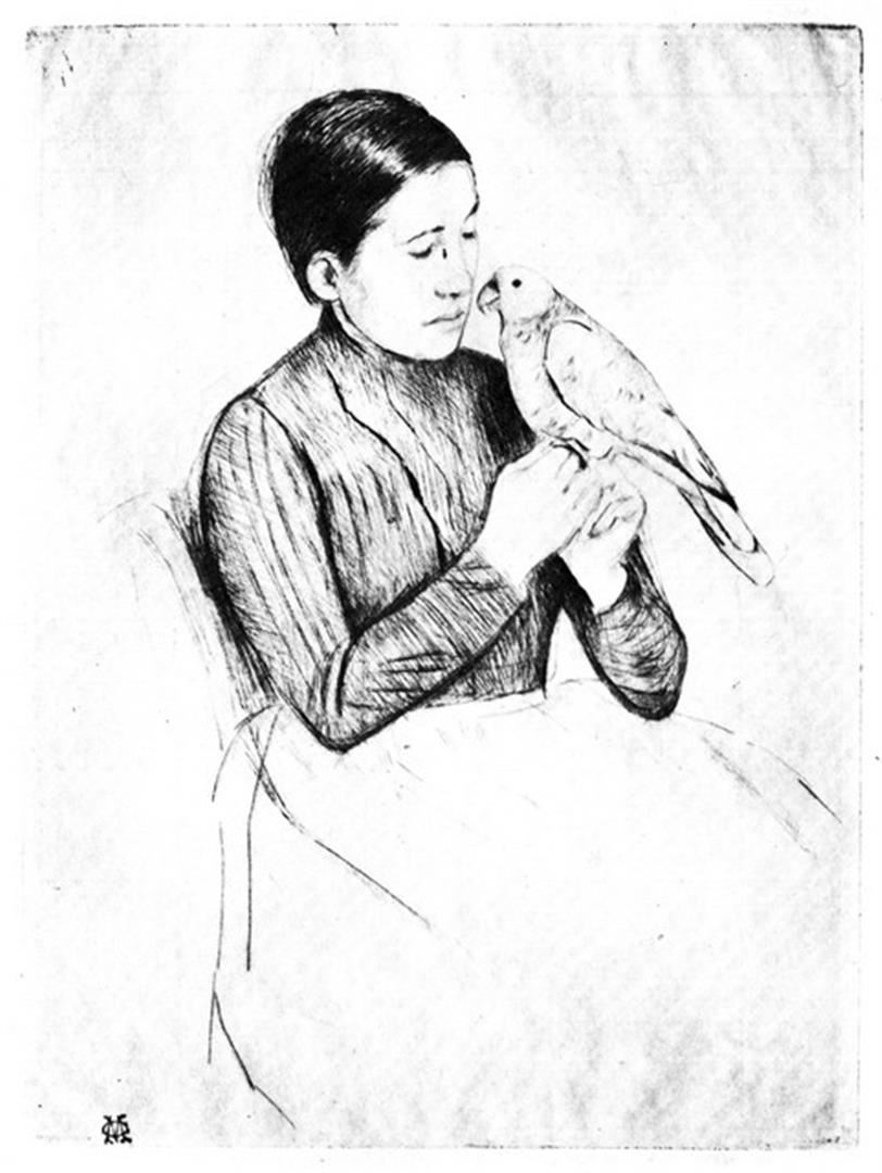 Artist: Mary Stevenson Cassatt (b. 1844 - 1926) Title: The Parrot Medium: Fine Art Reproduction Giclee on Canvas Image Size: Approximately 20 inches x 15 inches Unframed on Unstretched Canvas Birography: Born on May 22, 1844, in Allegheny City, Pennsylvania, Mary Cassatt was one of the leading artists in the Impressionist movement of the later part of the 1800s. Moving to Paris, her home for the rest of her life, she was befriended by Edgar Degas. After 1910, her increasingly poor eyesight virtually put an end to her serious painting, and she died in 1926.