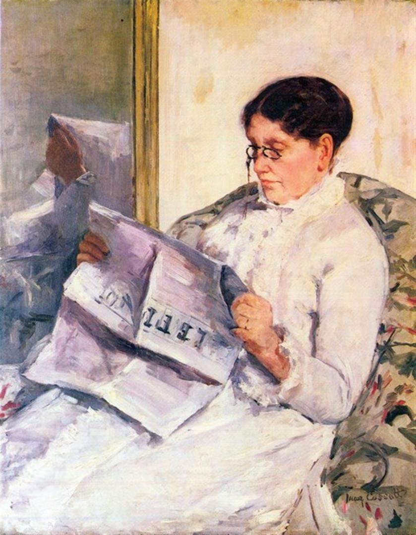 Artist: Mary Stevenson Cassatt (b. 1844 - 1926) Title: When Reading Of Figaro Medium: Fine Art Reproduction Giclee on Canvas Image Size: Approximately 32 inches x 24.75 inches Unframed on Unstretched Canvas Birography: Born on May 22, 1844, in Allegheny City, Pennsylvania, Mary Cassatt was one of the leading artists in the Impressionist movement of the later part of the 1800s. Moving to Paris, her home for the rest of her life, she was befriended by Edgar Degas. After 1910, her increasingly poor eyesight virtually put an end to her serious painting, and she died in 1926.