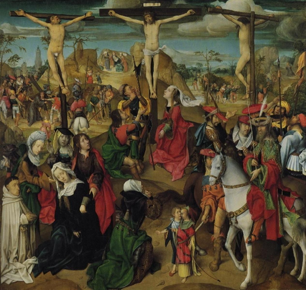 Artist: Master of Delft - Title:Passion of Christ [2] - Medium: Fine Art Giclee on Canvas - Image Size: Approximately 32 inches x 30 inches - Unframed on Unstretched Canvas - Biography: The Master of Delft (c. 1490-1520) was a Dutch painter of the final period of Early Netherlandish painting, whose name is unknown. He may have been born around 1470. The notname was first used in 1913 by Max Jakob Friedländer, in describing the wings of a Triptych with the Virgin and Child with St Anne with the central panel by the Master of Frankfurt, which is now in Aachen. This has donor portraits of an identifiable family from Delft, that of the Burgomaster of Delft, Dirck Dircksz van Beest Heemskerck (1463-1545), with his wife and children.