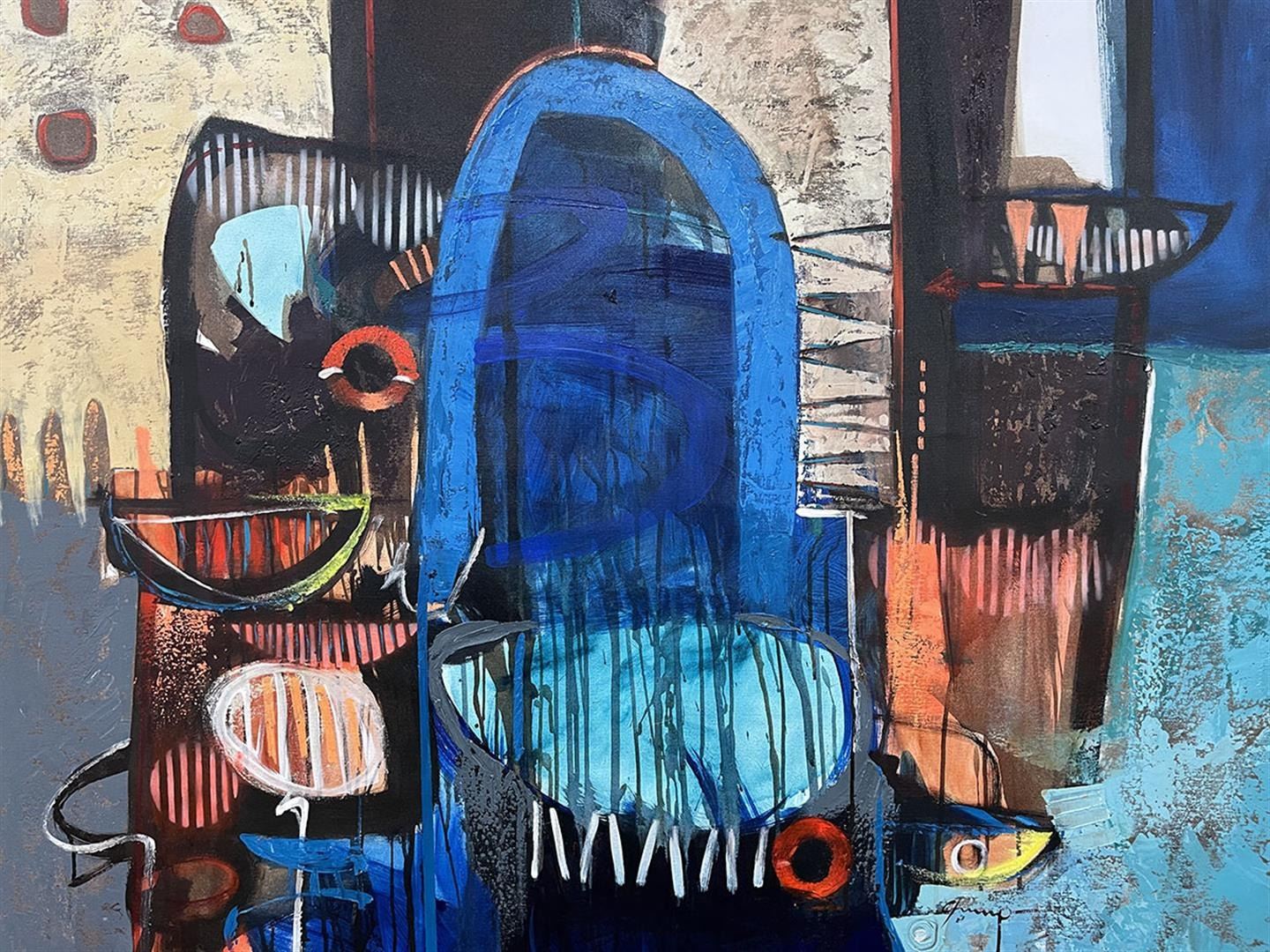 Stunning original oil on canvas. Hand signed by artist. This artwork comes rolled. Approximately 60x60 inches