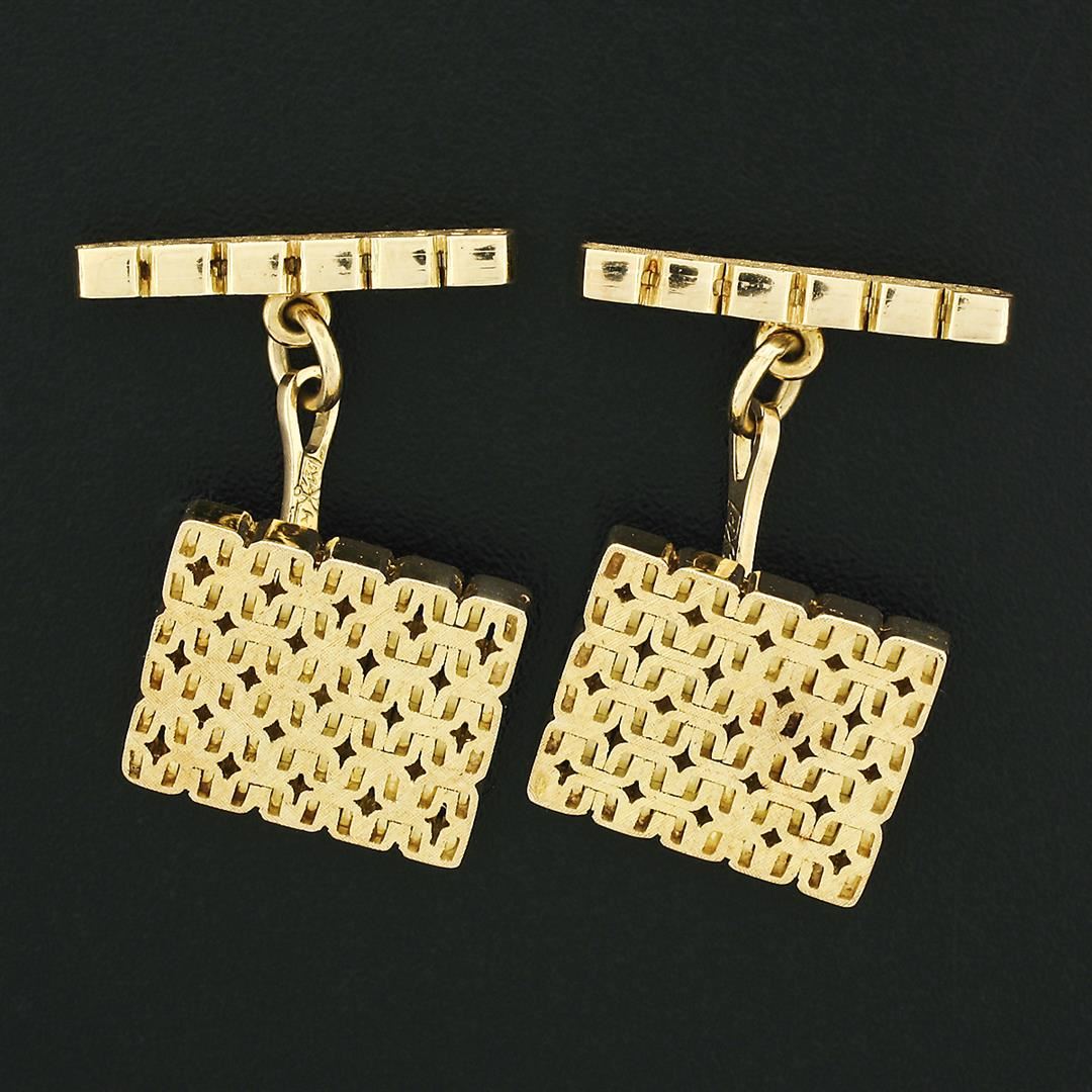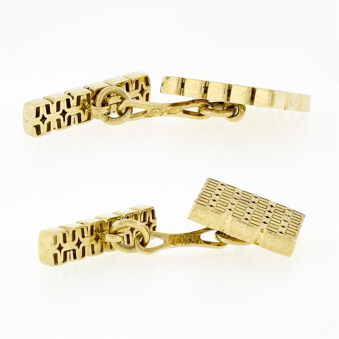 Men's Italian Solid 18k Yellow Gold Fancy Florentine Finished Chain Cuff Links
