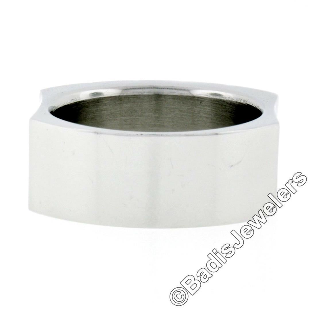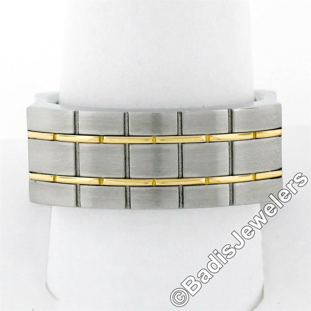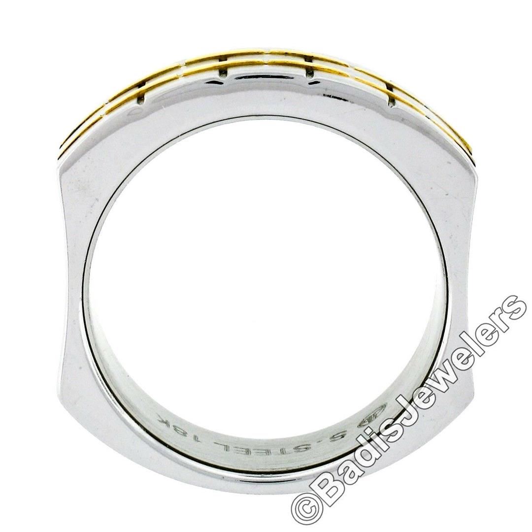 A men's stainless steel and 18kt yellow gold brick pattern domed band ring. The ring is size 11, weighs a total of 14.3 grams, and measures 9.45mm wide.