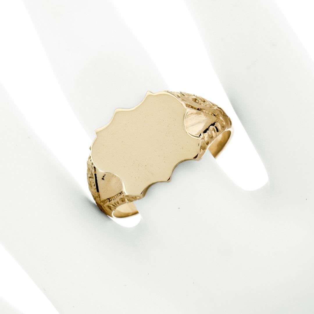 A vintage solid 14k yellow gold engraveable men's shield signet ring. The ring is size 12, weighs a total of 8.20 grams, and measures 13.60mm wide.