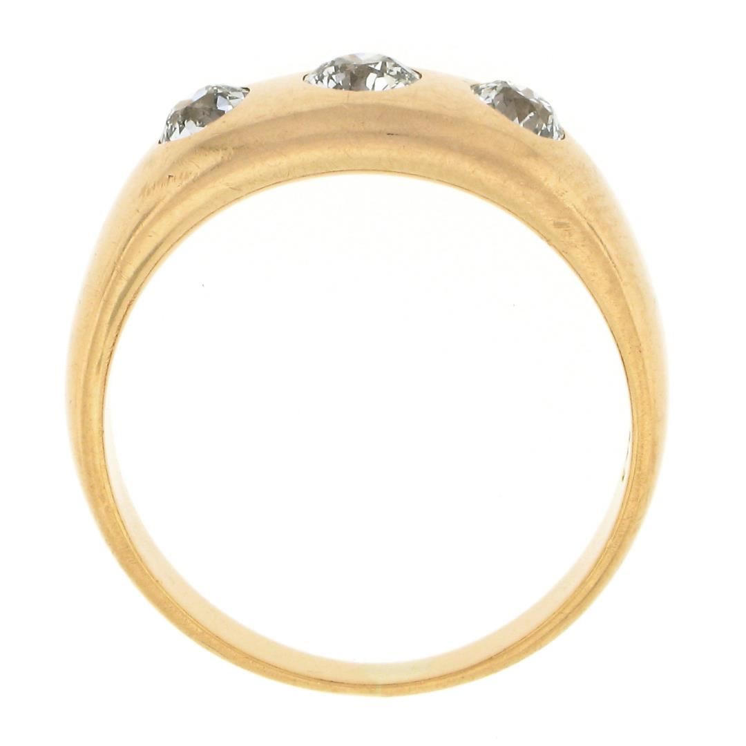 An antique solid 14k yellow gold men's gypsy band ring, with 3 old European cut natural diamonds (G/H - VS1/VS2 ; 0.80ctw ). The ring is size 10.0, weighs a total of 7.23 grams, and measures 7.40mm wide.