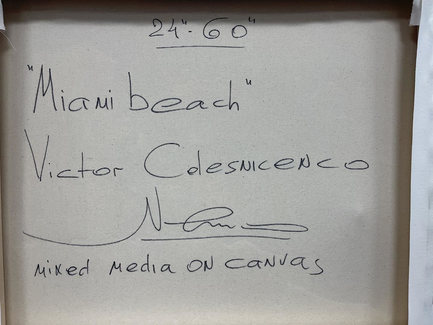Fascinating original mixed media on canvas, hand signed by artist, this artwork comes gallery wrapped.Approximately 24x60 inches.