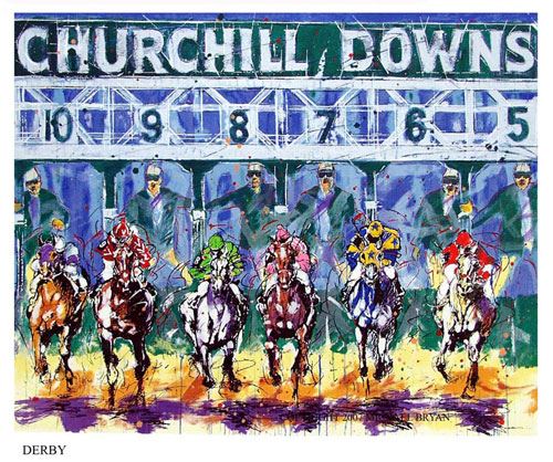 Michael Bryan's "Derby", 29x36" image is a Ltd Edition serigraph on paper. An exciting view of the starting gate at the World's most renowned horse race .