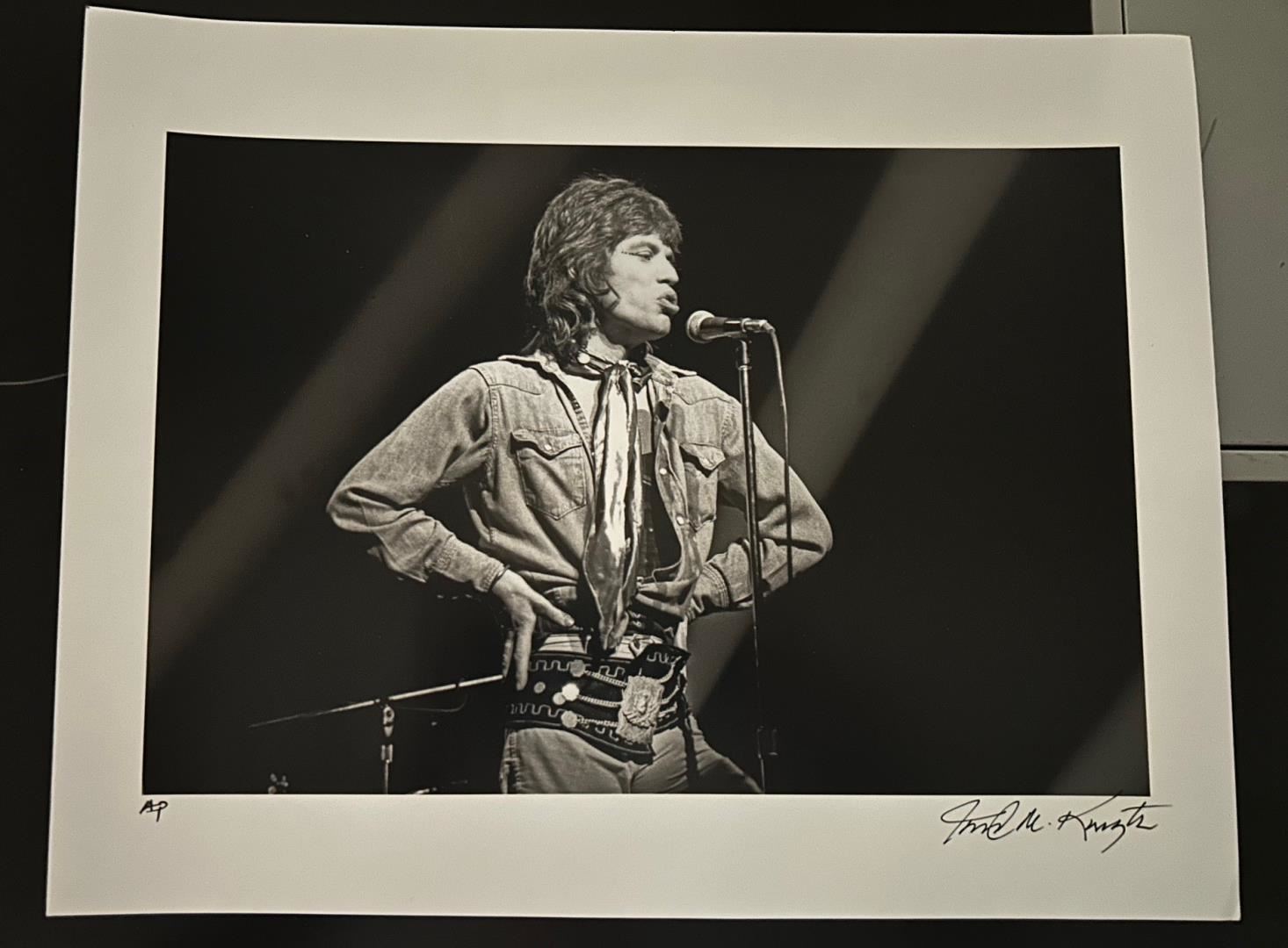 Mick Jagger stands alone ihn thi dramatic on stage photo by famed rock Robert Knight , 11x14 b & w Artist Proof