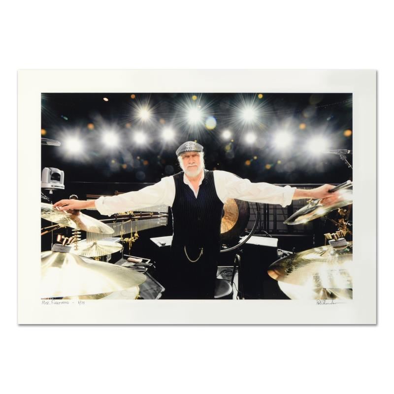 "Mick Fleetwood" is a limited edition giclee on paper, numbered and hand signed by acclaimed music industry photographer Rob Shanahan. Includes Certificate of Authenticity. Measures approximately 22" x 14.5" (image).