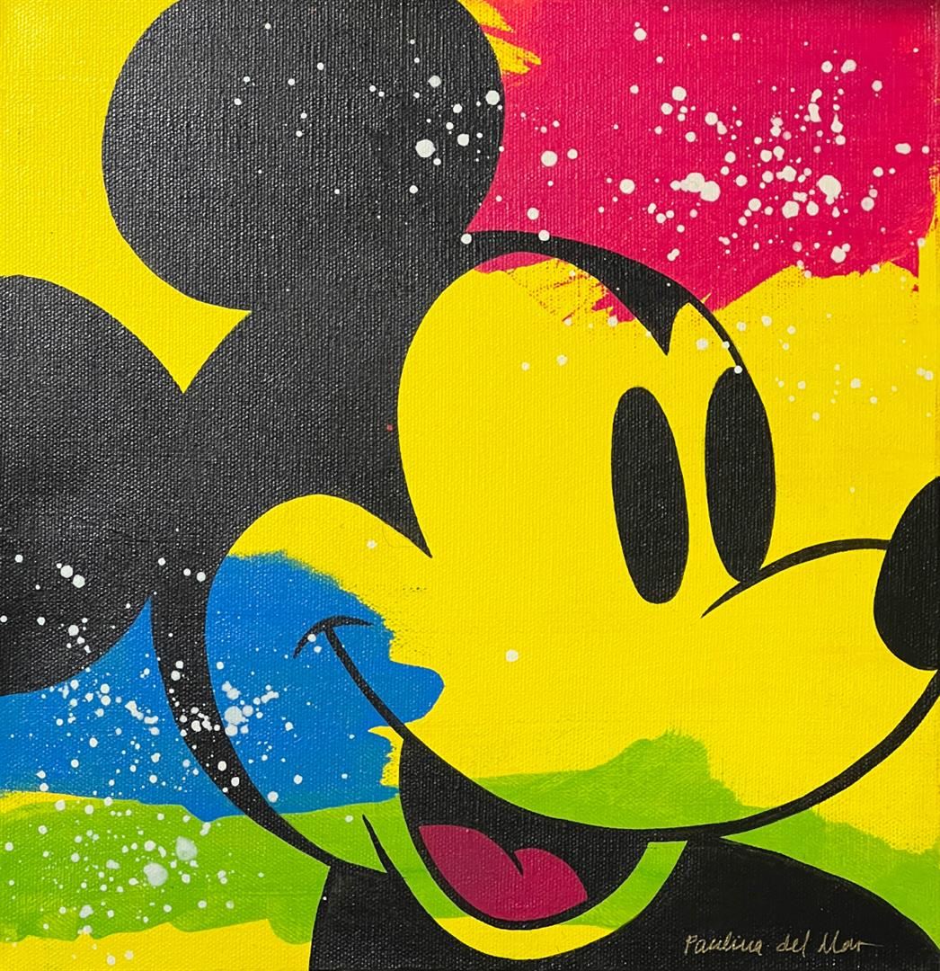 Mickey Mouse Yellow by Del Mar, Paulina. Original One-of-a-Kind Hand Signed Oil on Canvas Stretched. Dimensions: 12 x 12. Excellent Condition.