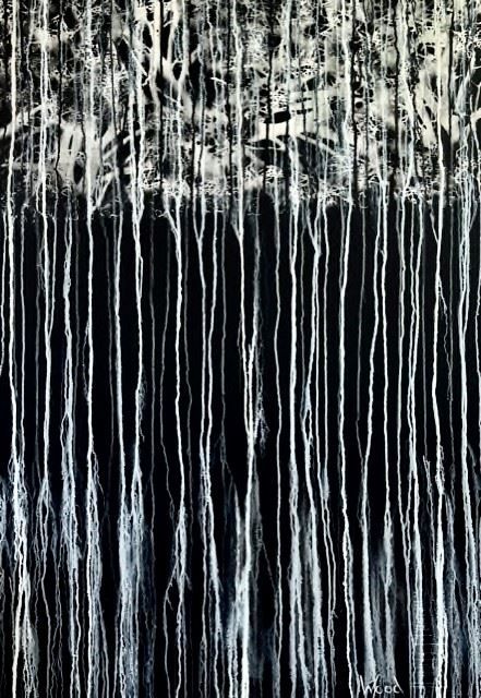 A Very large abstract, black and white acrylic on stretched canvas 72x48" by Marion wood. COA