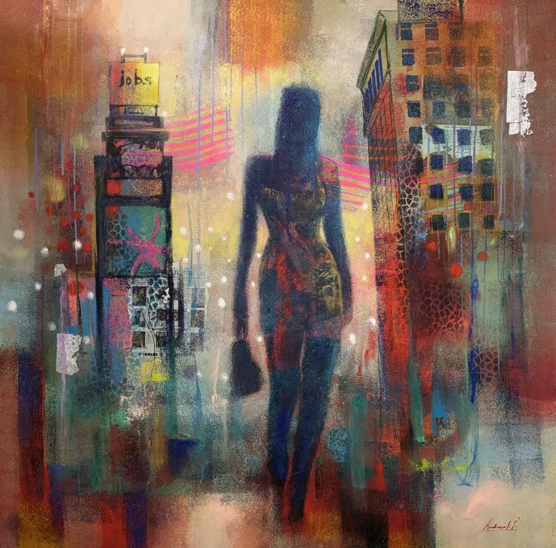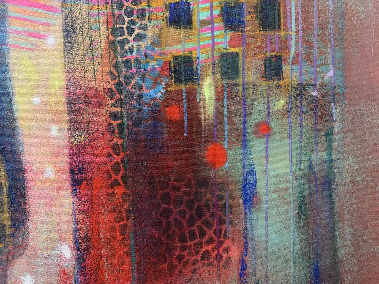 Stunning original acrylic on canvas59x59". Hand signed by artist. This artwork comes rolled in a tube for easy shipping.