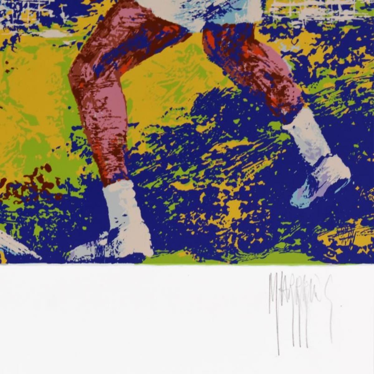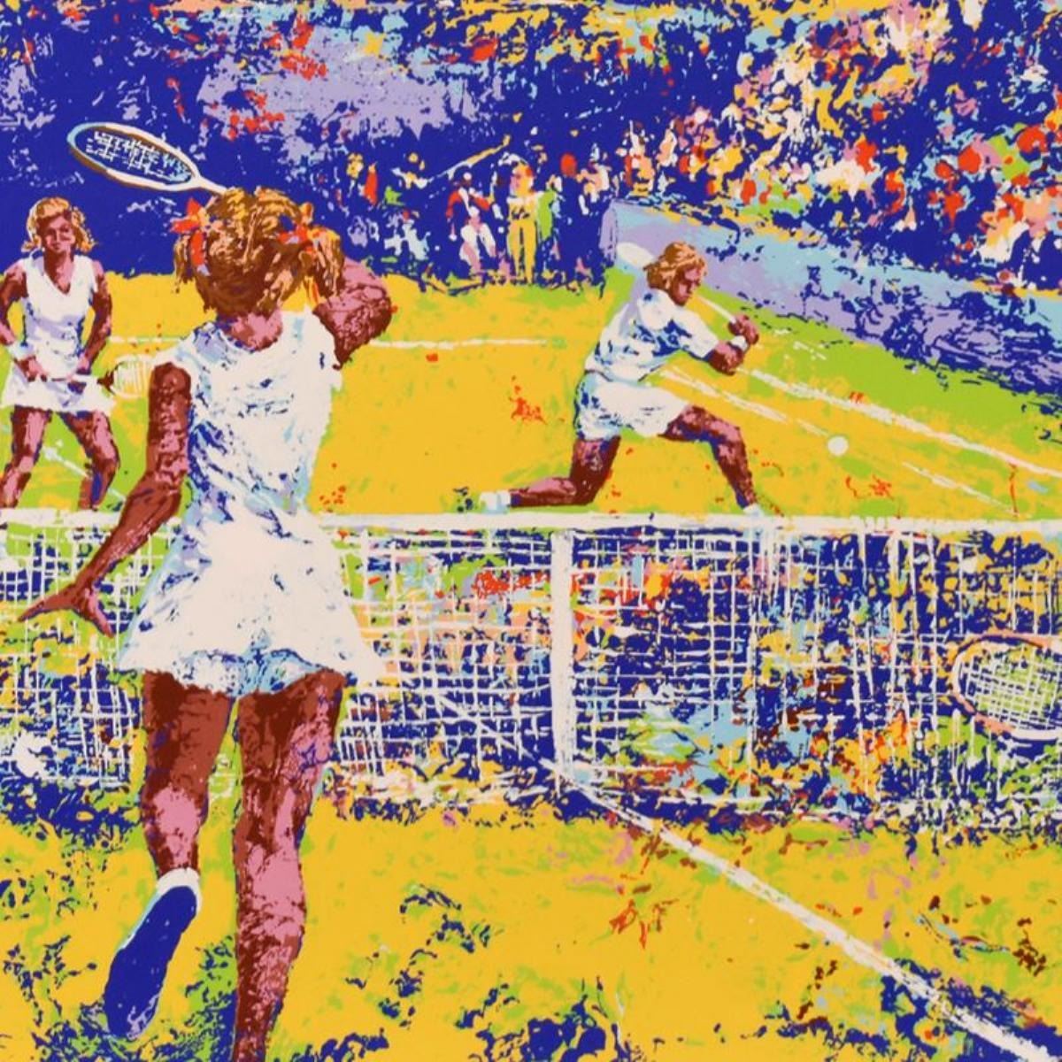 "Mixed Doubles" is a limited edition serigraph on paper by Mark King (1931-2014), numbered and hand signed by the artist. Includes Letter of Authenticity. Measures approx. 35.5" x 27.5" (border), 28" x 20.5" (image). Please note: due to the age of this piece there is minor wear in the white border area.