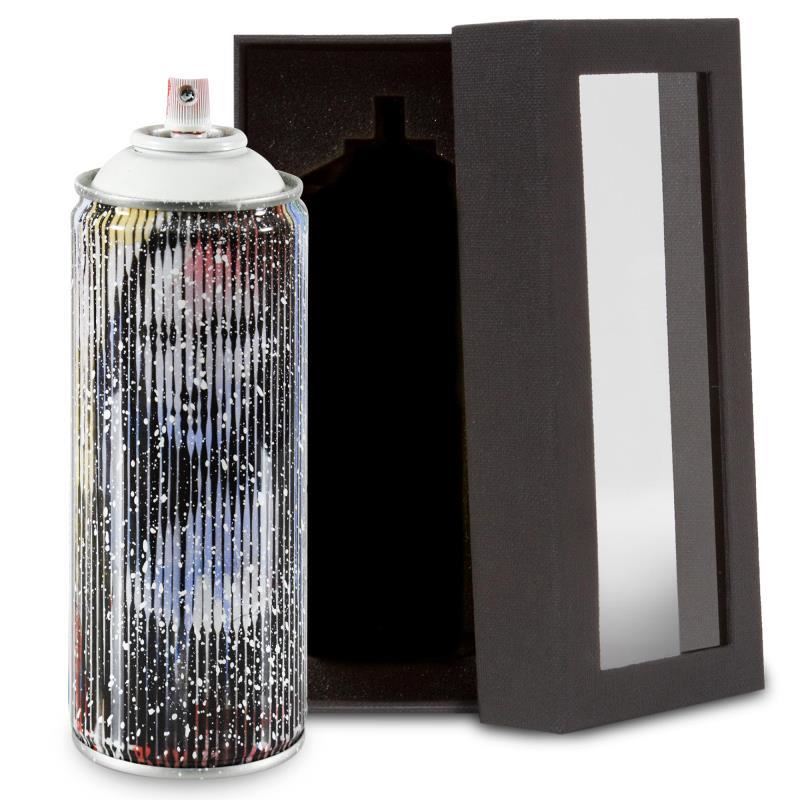 Mona Lisa (White) is a numbered limited edition hand painted spray can by Mr Brainwash. This piece bears the plate signature of the artist and comes from his 2020 Classic Spray Can Collection. Measures approximately 2.5 x 7.5.