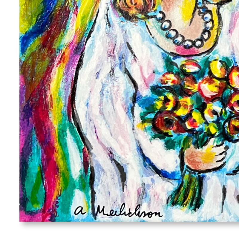 "Moonlight Wedding" is a limited edition serigraph on paper by Alex Meilichson. The piece comes hand signed by the artist, numbered, and with a letter of authenticity. Measures approximately 9" x 12".
