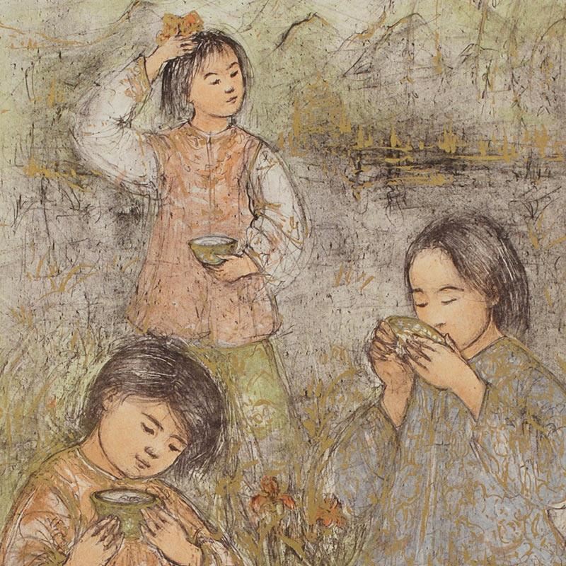 "Morning at Brook Side" is a limited edition lithograph on paper, numbered and hand signed by Edna Hibel (1917-2014). Includes Certificate of Authenticity! Measures approx. 18" x 22" (with border), 14.5" x 18" (image).