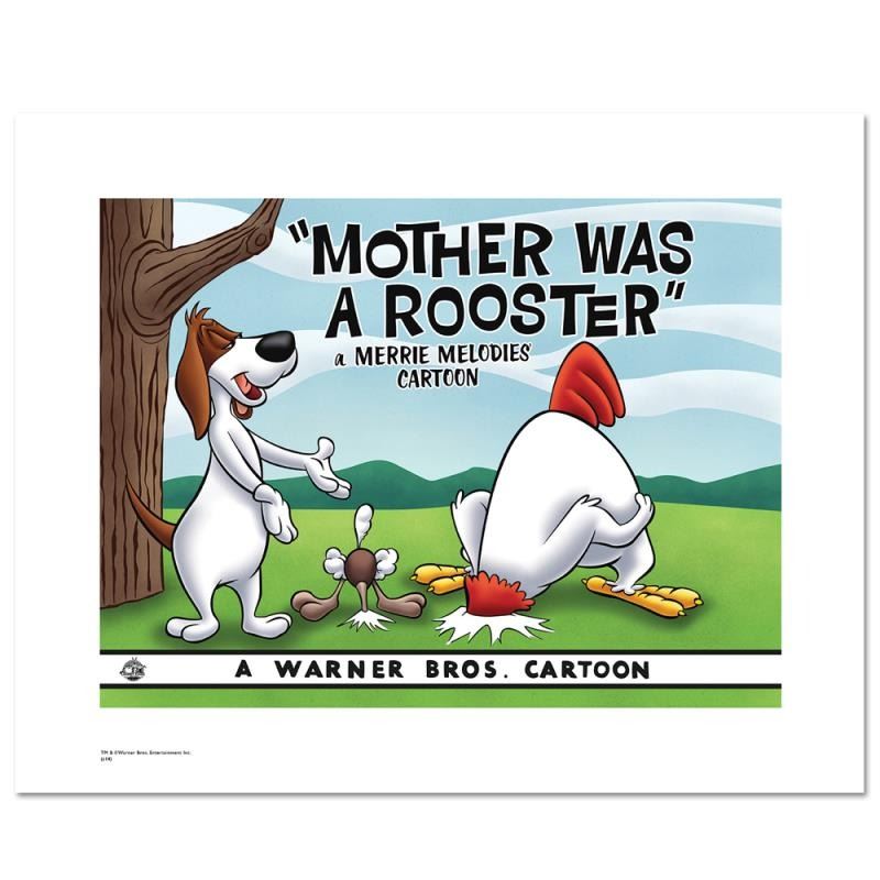 "Mother Was A Rooster" is a limited edition giclee on paper from Warner Bros. featuring iconic Looney Tunes characters. The art was taken from an original Lobby Card used to promote "Mother Was A Rooster" released in 1962. It comes numbered, with hologram seal, and a Certificate of Authenticity! Measures approx. 20 x 16" (with border), 16" x 12" (image).