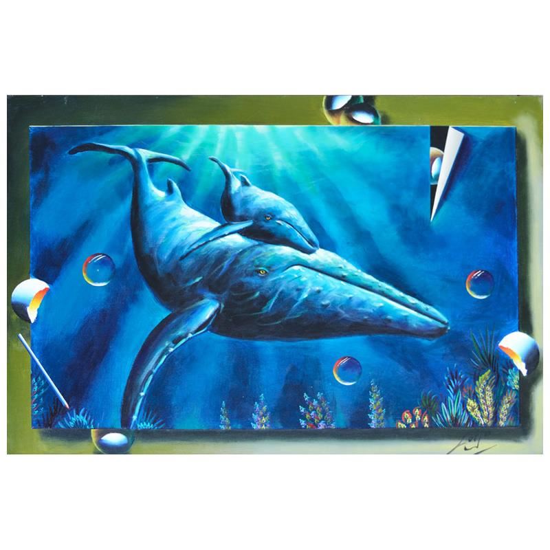 "Mothers Training" is an original painting, oil on stretched canvas, by Ferjo. Hand signed by the artist, this piece comes with a letter of authenticity. Measures approx. 24" x 36" (image).