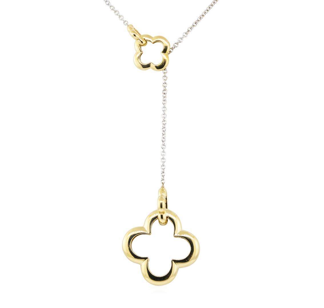 One adjustable Mouawad Clover Necklace featuring: 18KT yellow and white gold weighing 20.3 grams.