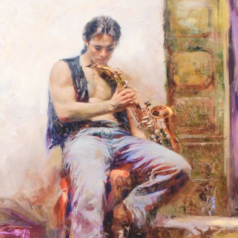 "Music Lover" is a limited edition giclee on paper by Pino (1939-2010). The piece comes numbered and is hand signed by the artist. Includes Certificate of Authenticity. Measures approximately 20 x 16" (image).