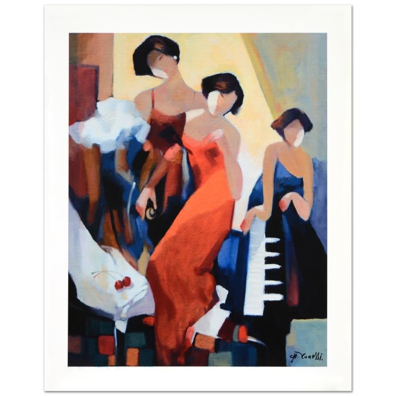 "Musical Trio" is a limited edition giclee on canvas by Yunessi Gholam, numbered inverso and hand signed by the artist! Includes Certificate of Authenticity! Measures approx. 20" x 24" (image).
