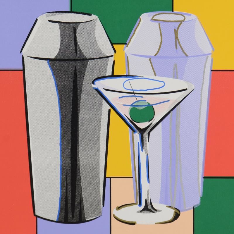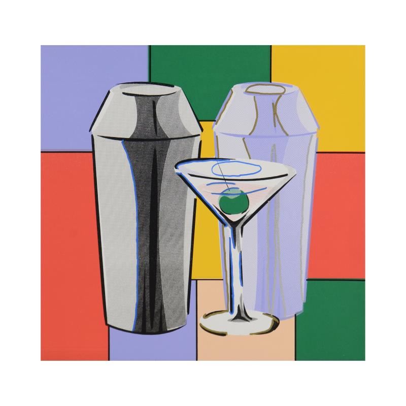 "My Martini" is a hand embellished limited edition silkscreen on canvas by Andy Warhol protege Steve Kaufman (1960-2010). This piece is numbered 26/50 and hand signed inverso. Includes Certificate of Authenticty. Measures approx. 20" x 20" (image).