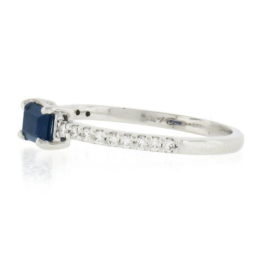 NEW 14K White Gold 0.62ct Rectangular Step Cut Sapphire Solitaire & Diamond Ring