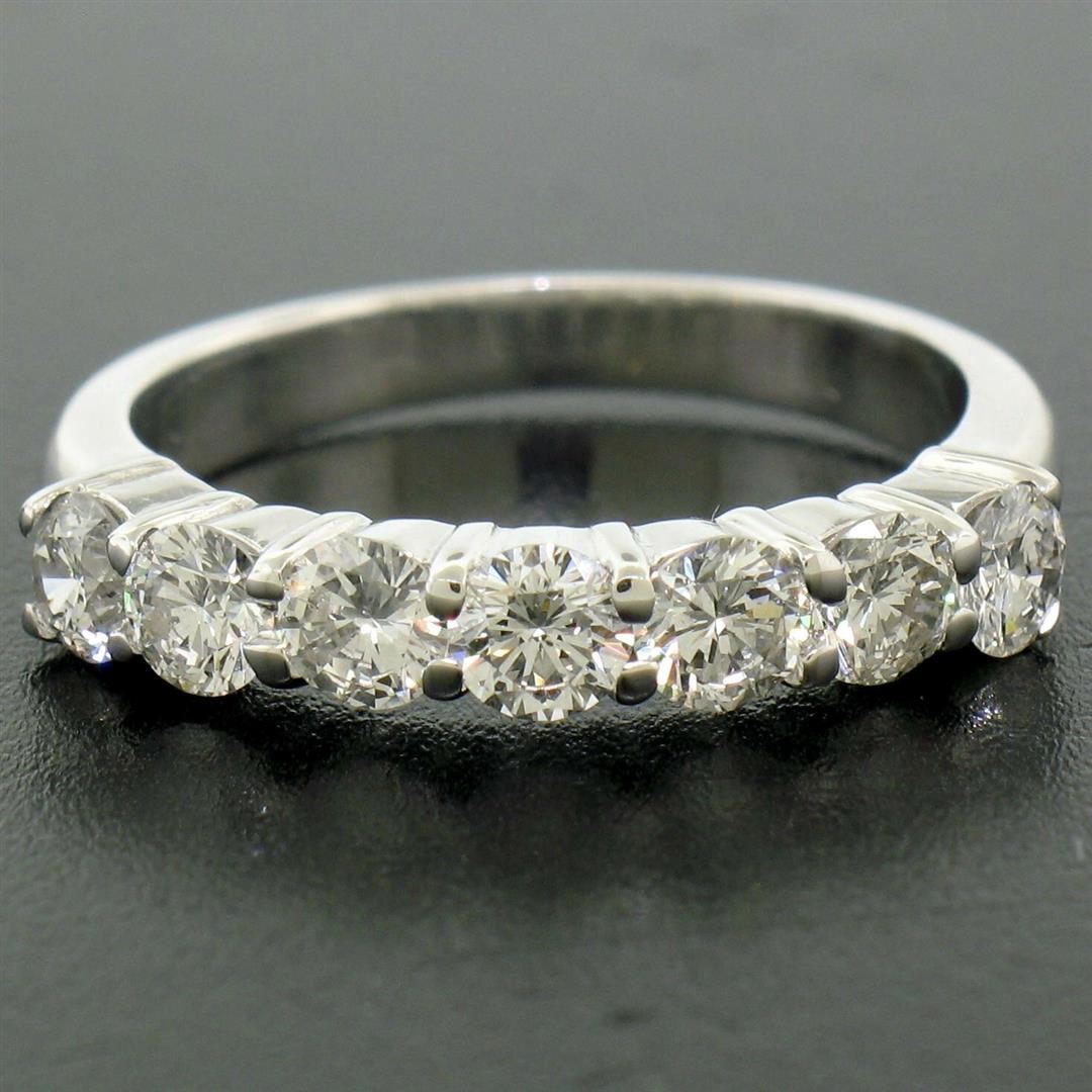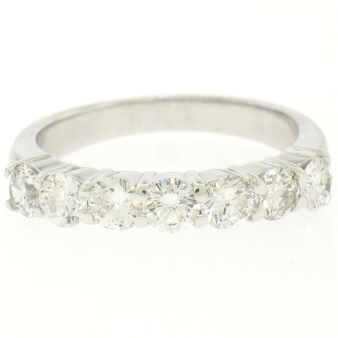 One NEW 14K White Gold 1.25ctw Prong Large Round Brilliant Cut Diamond Wedding Band Ring. Item Details: Material: Sold 14K White Gold, Weight: 3.88 Grams, Stone(s): (7) Natural Genuine Diamonds - Round Brilliant Cut - Shared Prong Set - G/H Color - VS2/SI1 Clarity, Total Carat Weight: 1.25 (approx.), Ring Size: 6.75 , Ring Width: 3.70mm, Ring Height: 3.85mm rise off the finger, Condition: New w/o Tag!