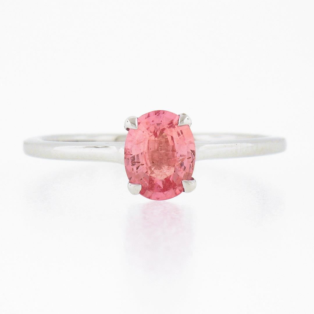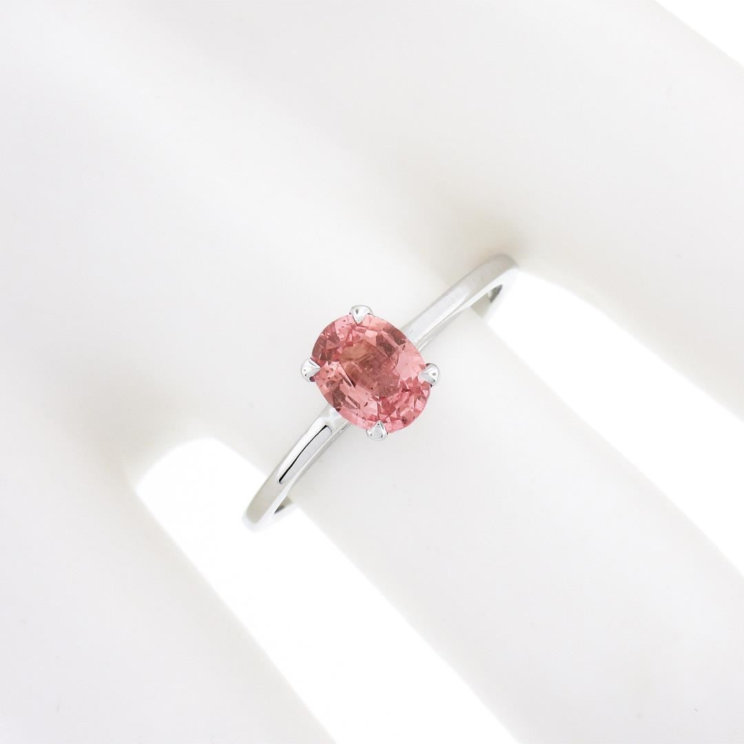 A new solid 14k white gold ring, with 1 GIA graded oval cut natural sapphire (0.80ct). The ring is size 6.5, weighs a total of 1.80 grams, and measures 6.4mm wide. Comes with all original relevant certifications.