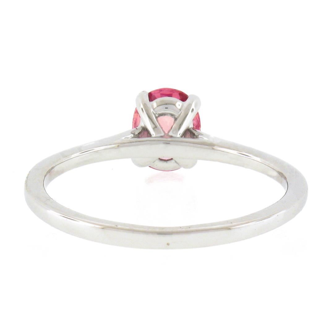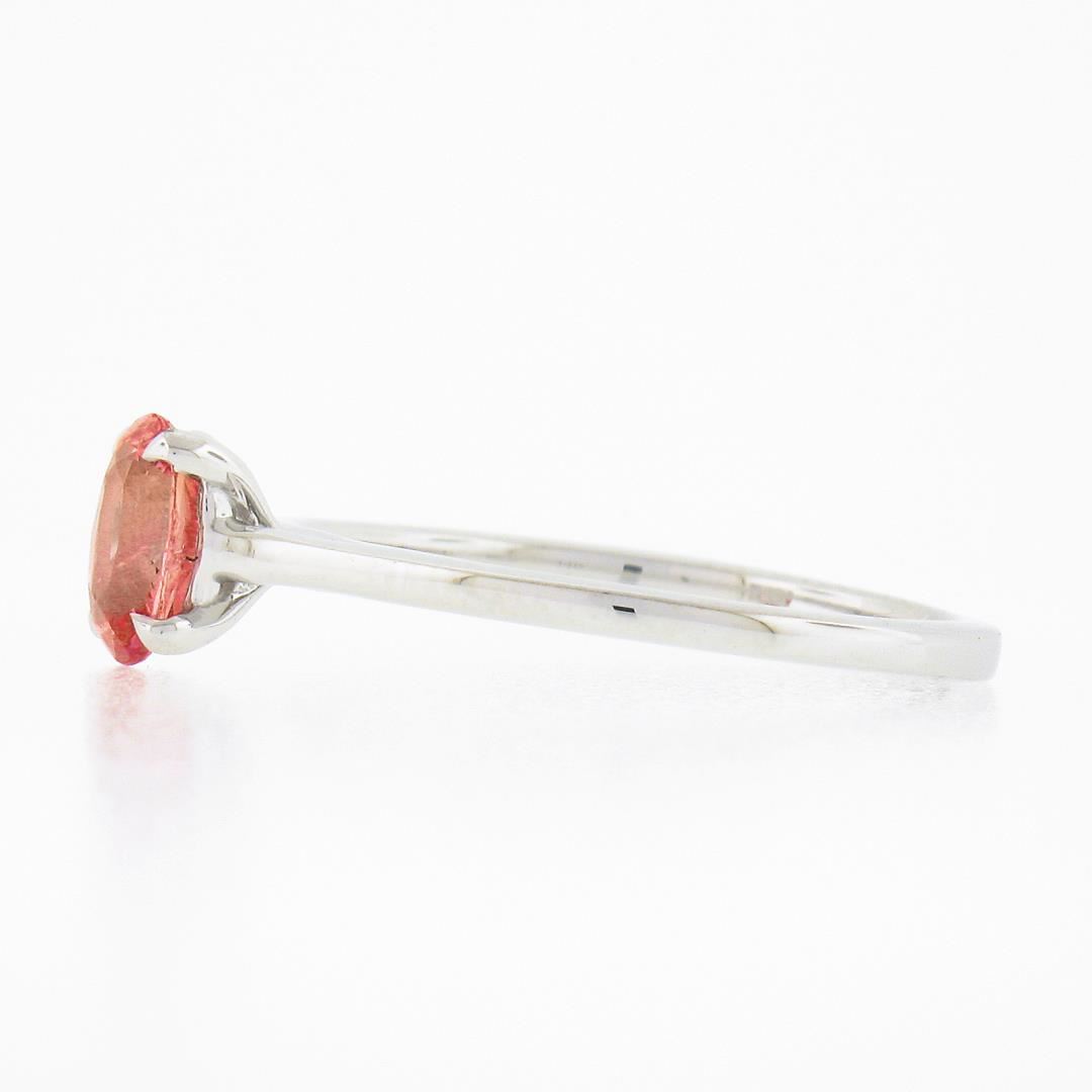 A new solid 14k white gold ring, with 1 GIA graded oval cut natural sapphire (0.80ct). The ring is size 6.5, weighs a total of 1.80 grams, and measures 6.4mm wide. Comes with all original relevant certifications.