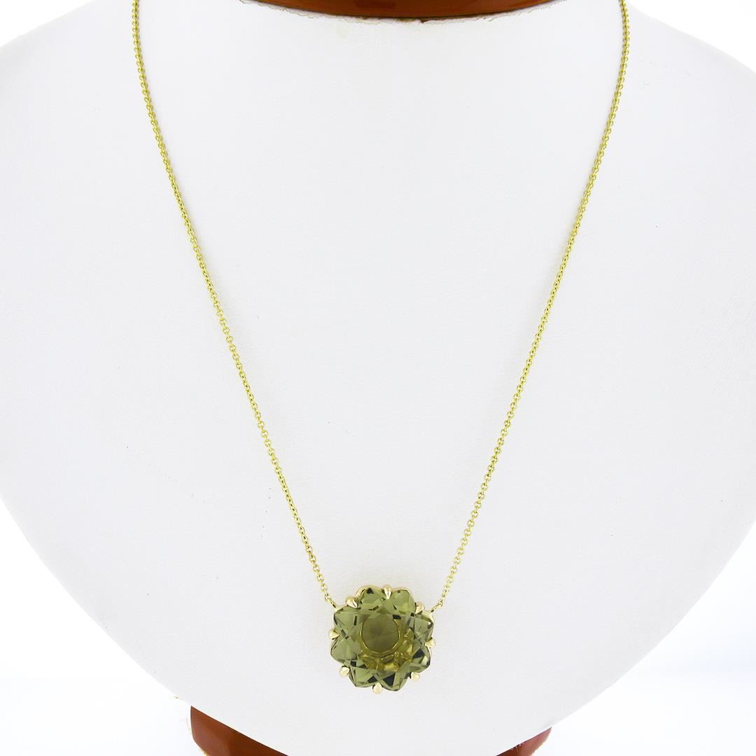 A new solid 14k yellow gold pendant necklace, with star snowflake cut natural smoky quartz (13ctw). Adjustable 17 & 19 inch cable link chain, 9.72 grams total weight, pendant measures 17.7x17.8mm.