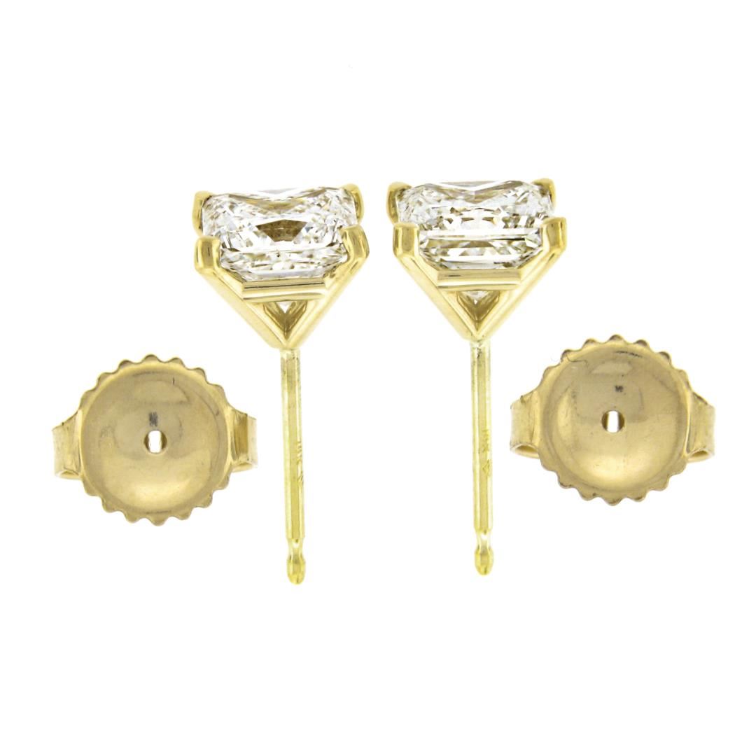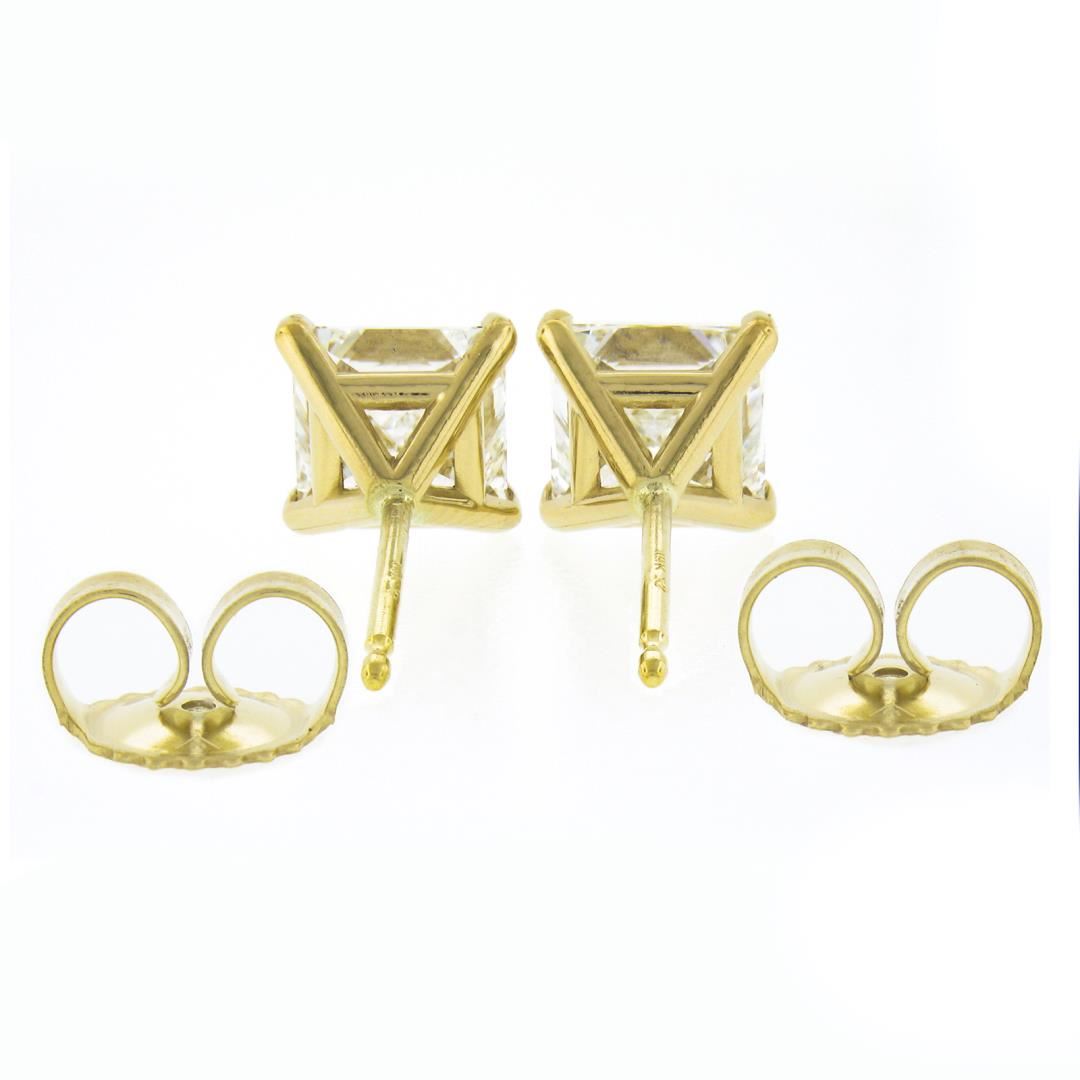 A new solid 14k yellow gold stud earrings, with 2 GIA graded square princess cut natural diamonds ( H/I - VS1/VS2 ; 2.14ctw). The earrings measure approximately 8.6x8.6mm and weigh a total of 1.54 grams. Comes with all original relevant certifications.