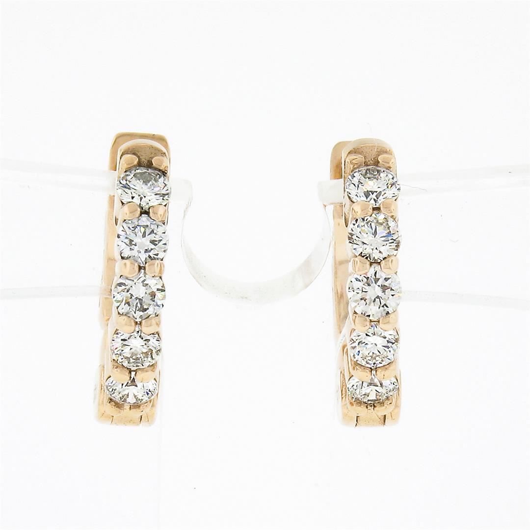 NEW 14k Rose Gold 0.50 ctw Shared Prong Round Diamond 13mm Huggie Hoop Earrings