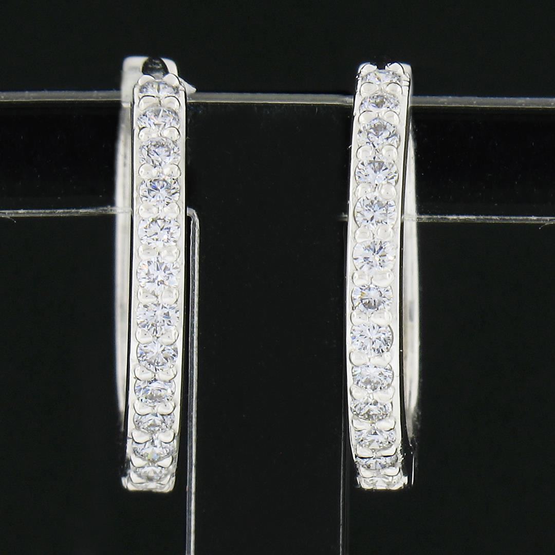 A new solid 14k white gold hoop earrings, with 26 round brilliant cut natural diamonds (F/G - VS1/VS2 ; 0.33ctw). The earrings measure approximately 15.7x2mm and weigh a total of 2.30 grams.