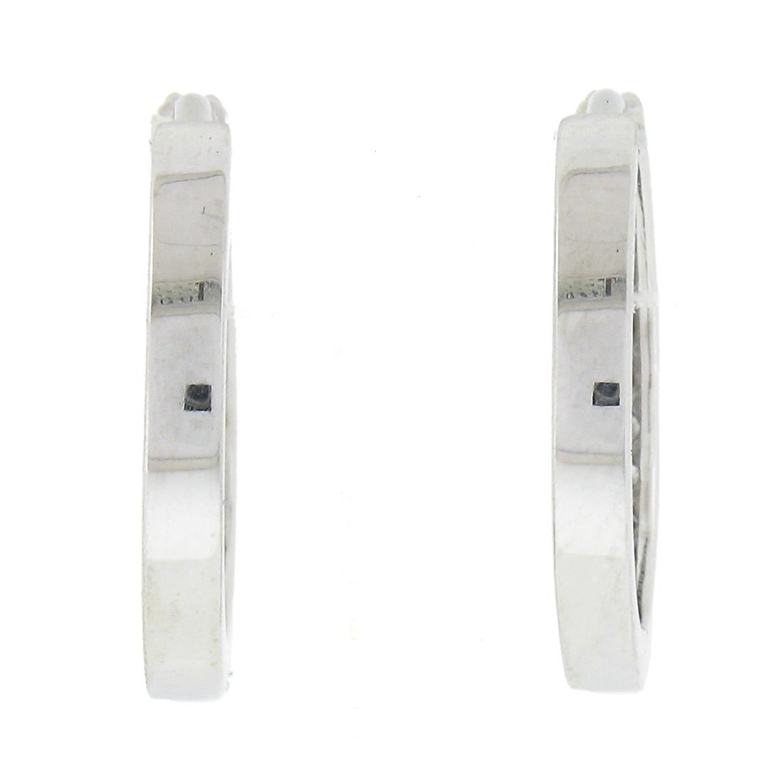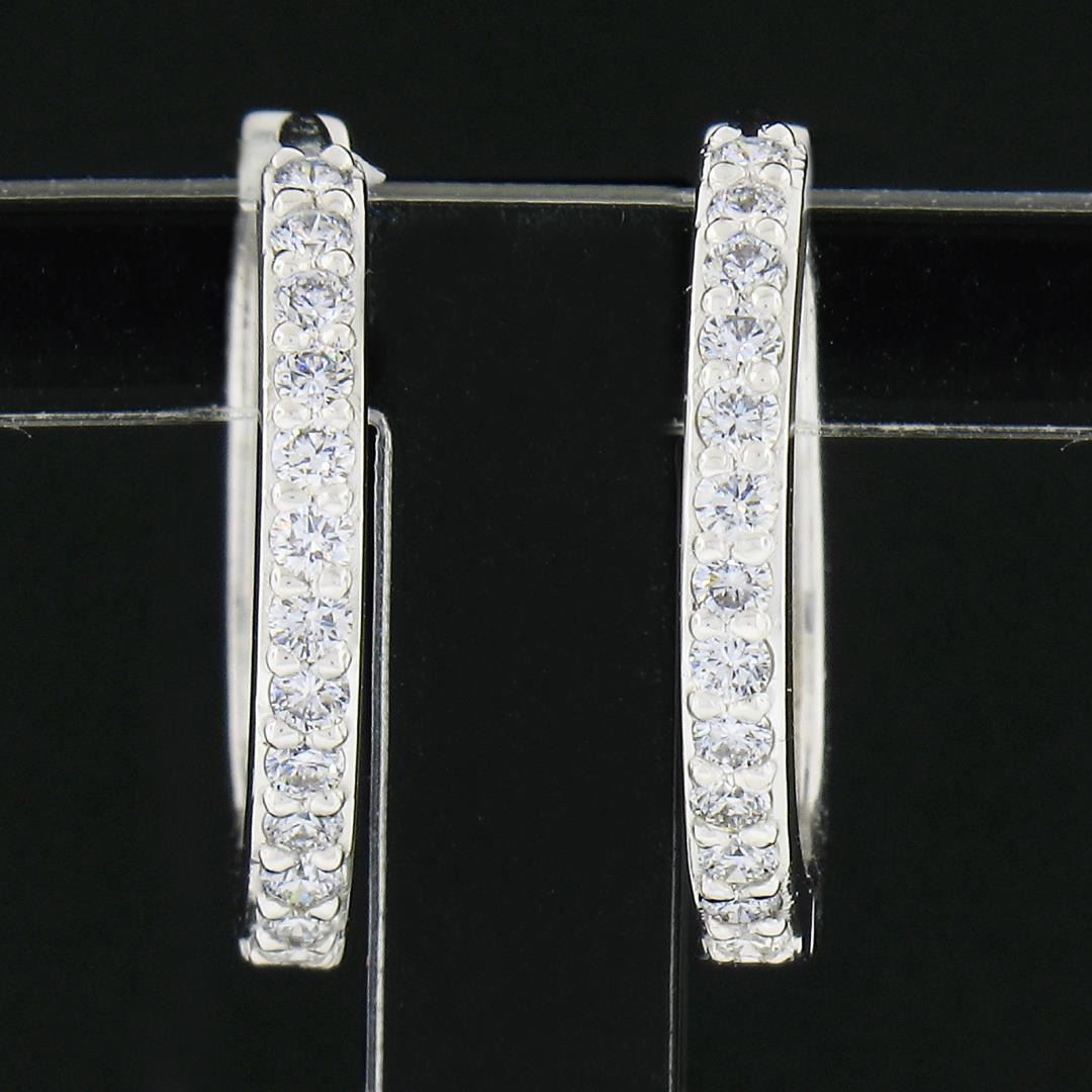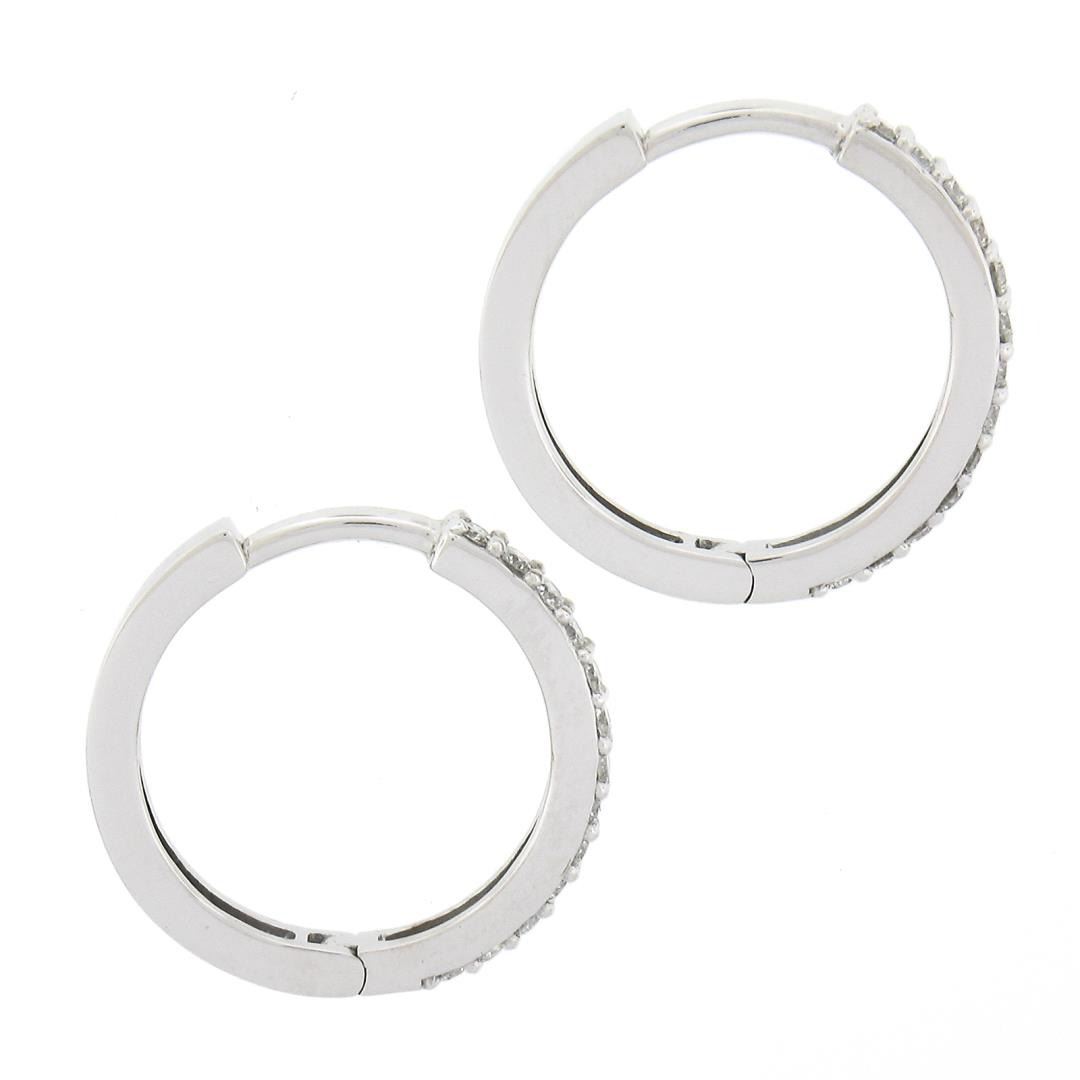 A new solid 14k white gold hoop earrings, with 26 round brilliant cut natural diamonds (F/G - VS1/VS2 ; 0.33ctw). The earrings measure approximately 15.7x2mm and weigh a total of 2.30 grams.