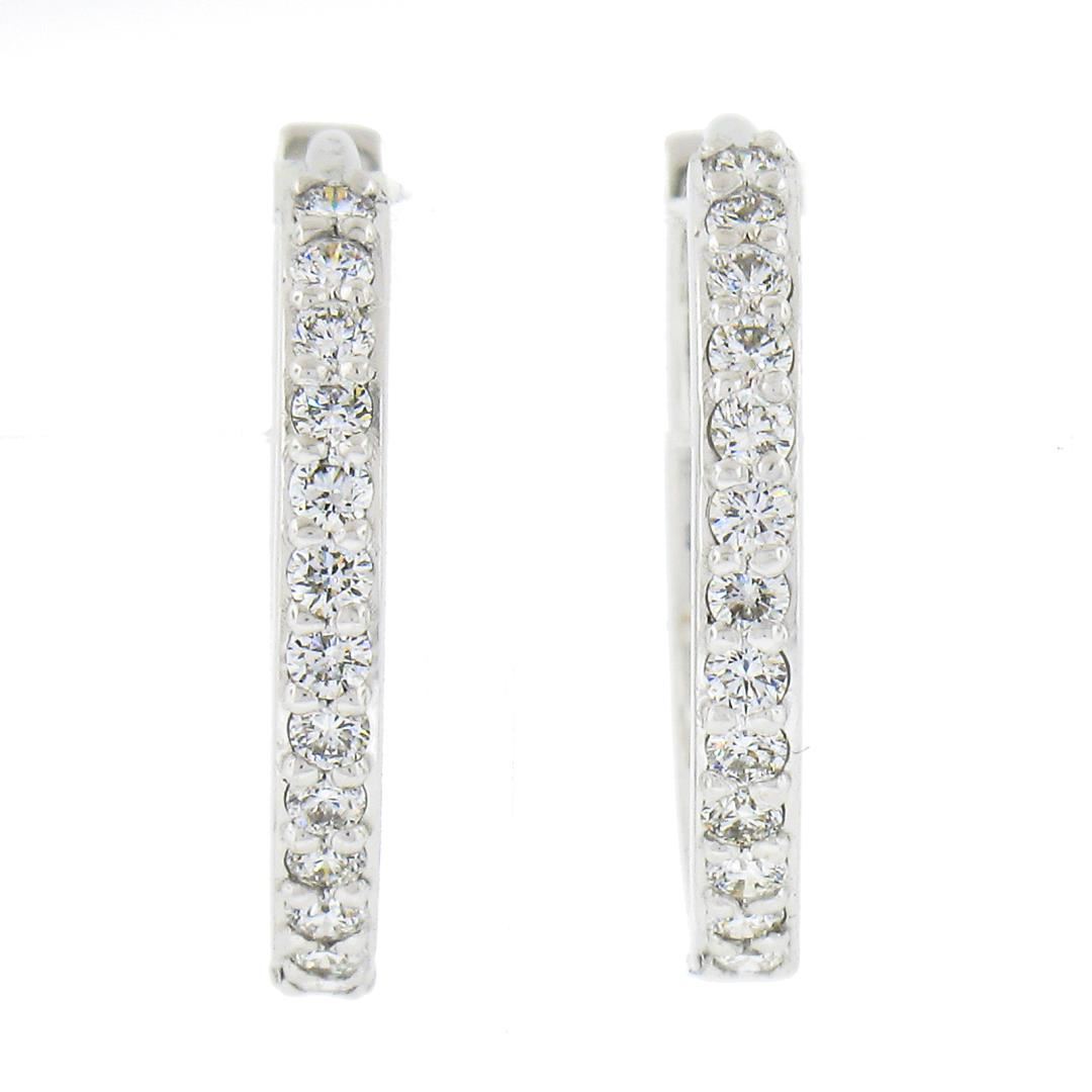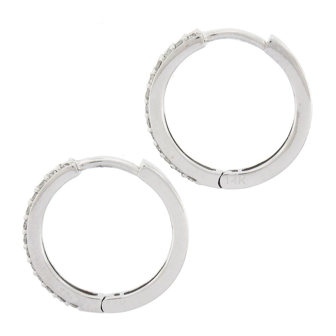 A new solid 14k white gold hoop earrings, with 26 round brilliant cut natural diamonds (F/G - VS1/VS2 ; 0.33ctw). The earrings measure approximately 15.7x2mm and weigh a total of 2.30 grams.