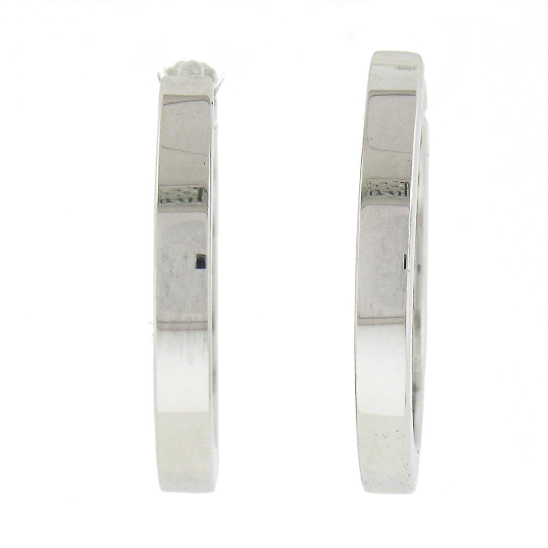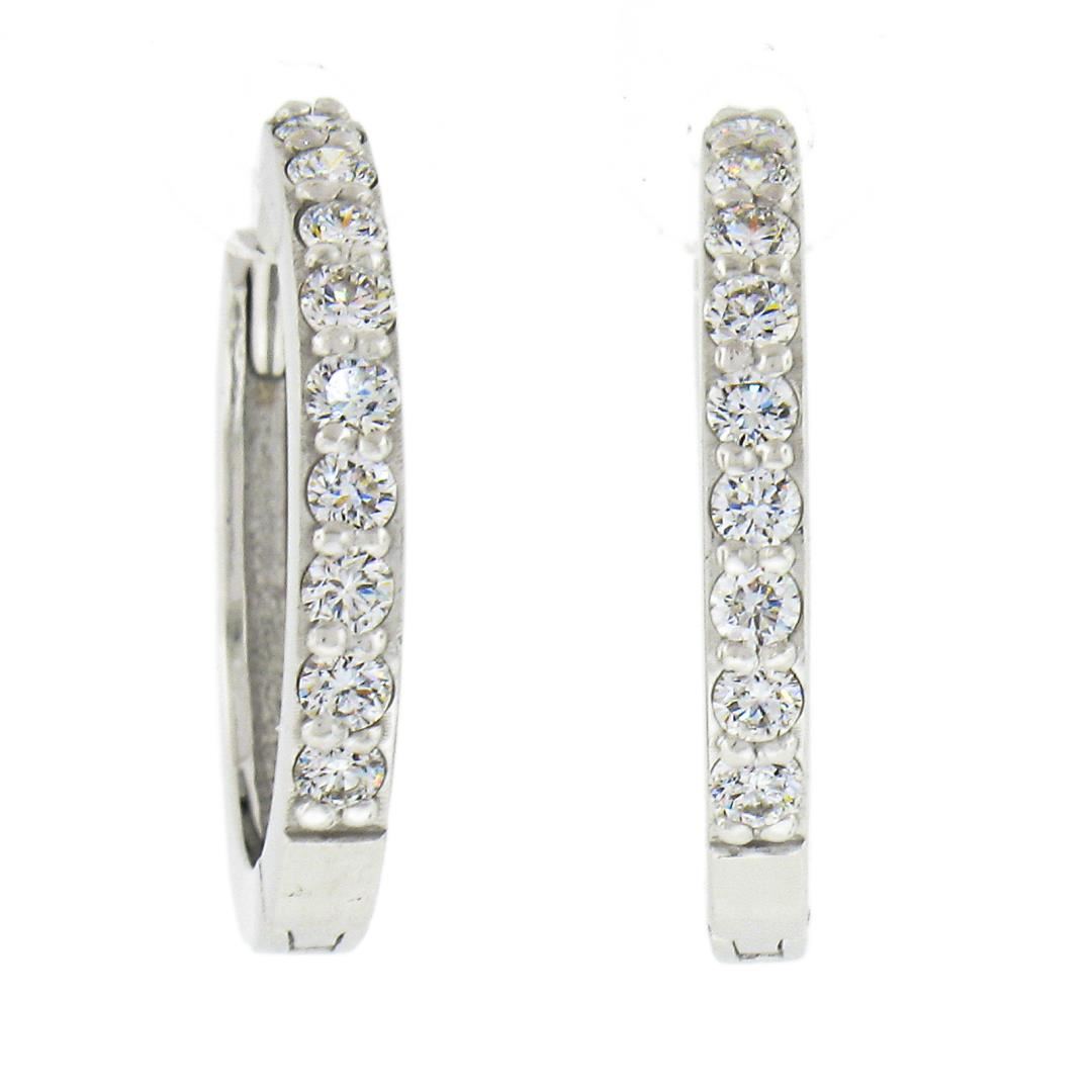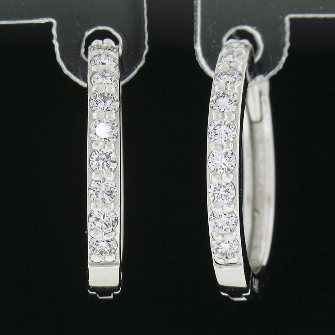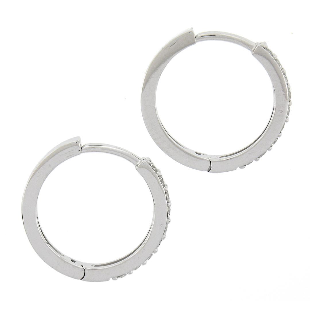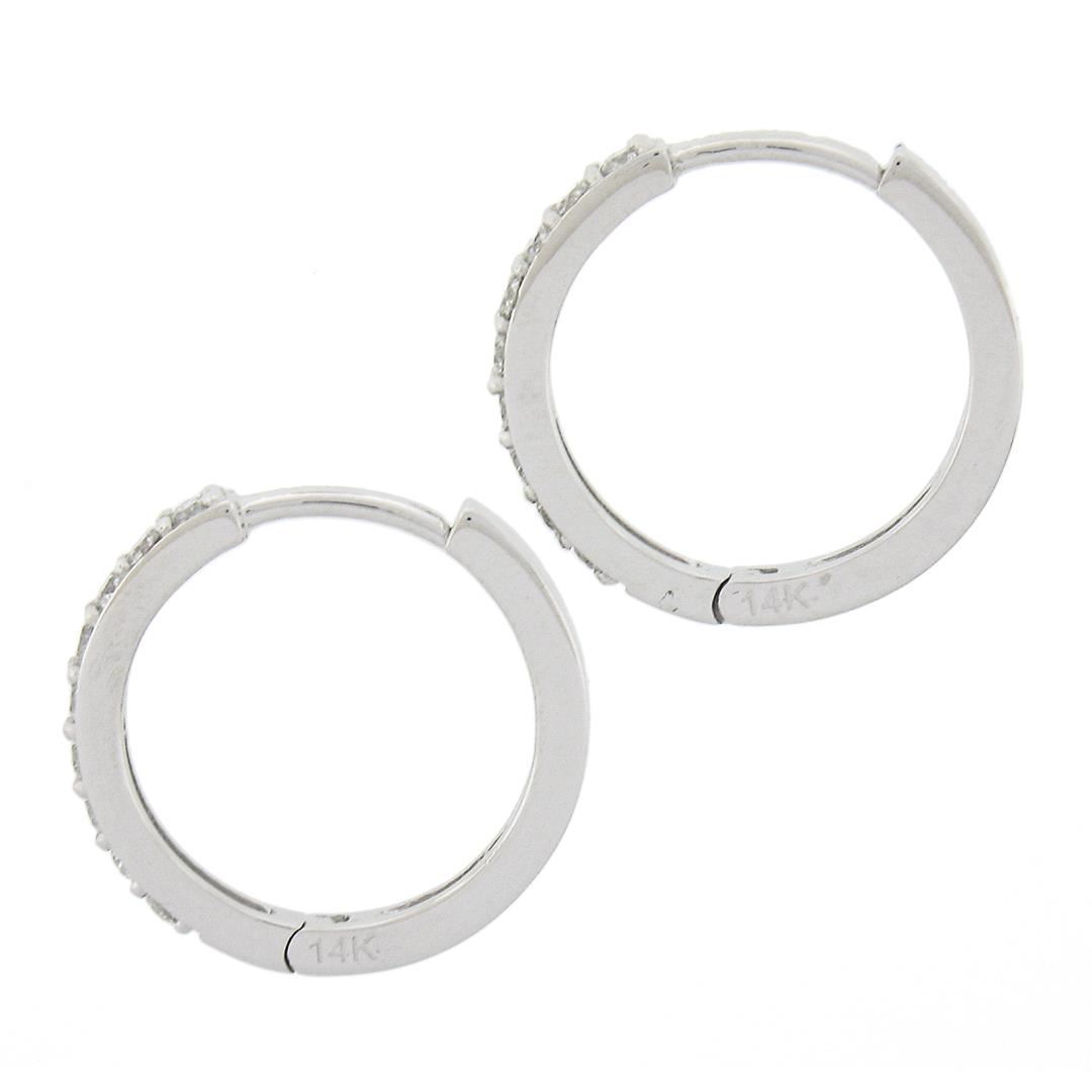 A new solid 14k white gold hoop earrings, with 18 round cut natural diamonds (F/G - VS1/VS2 ; 0.36ctw). The earrings measure approximately 15.5x2.1mm and weigh a total of 2.46 grams.