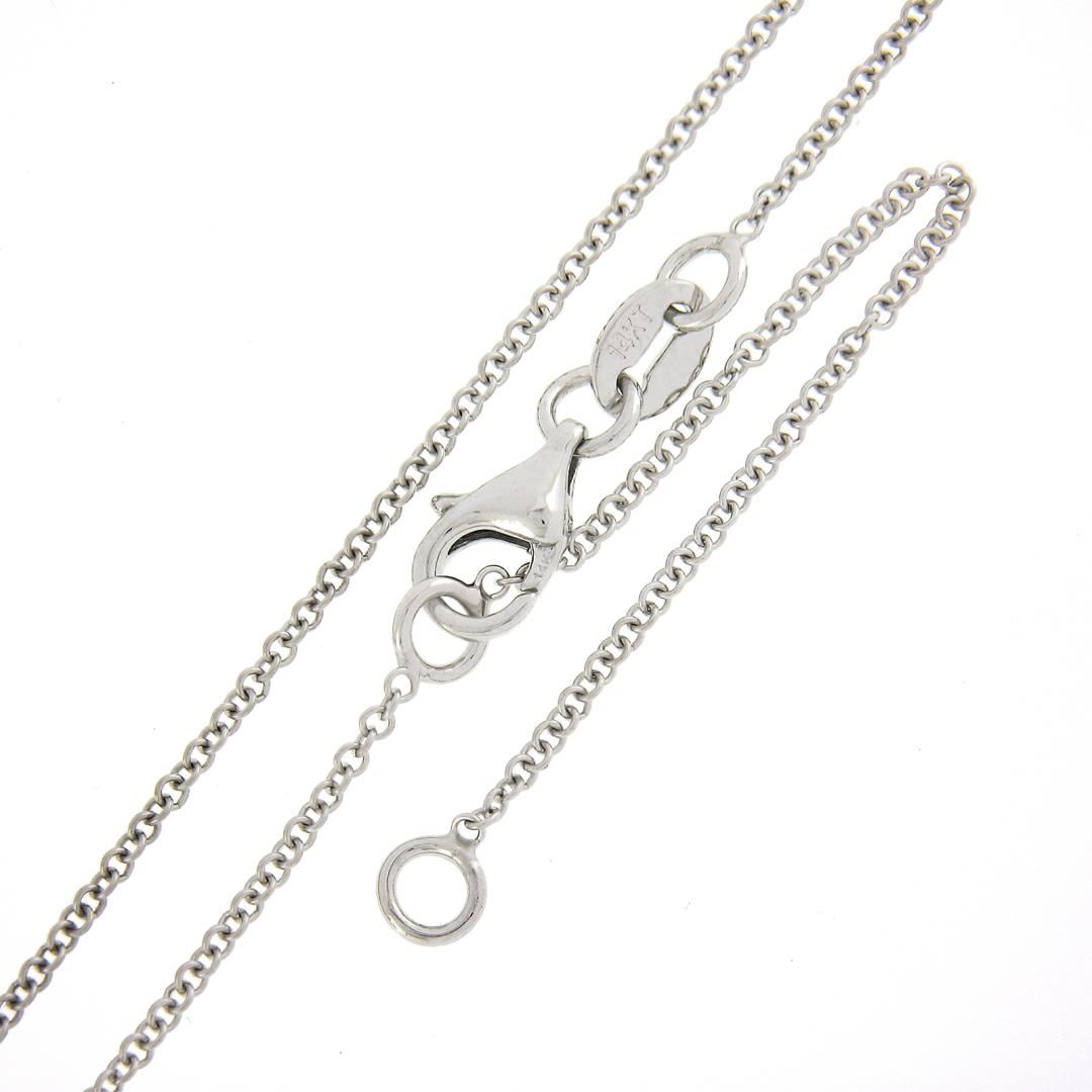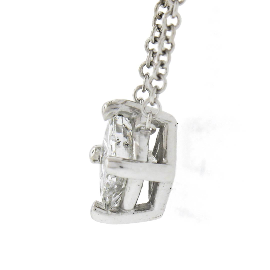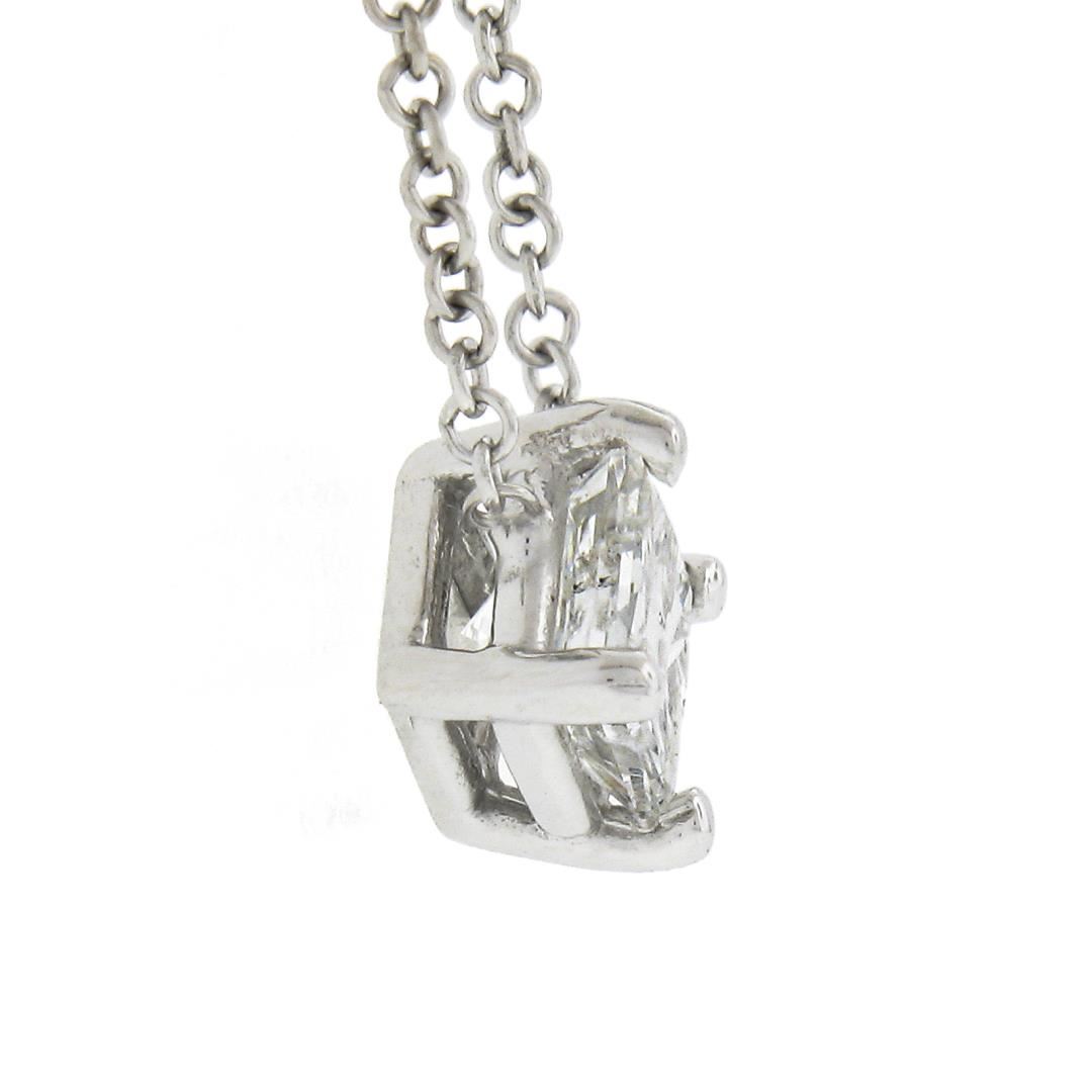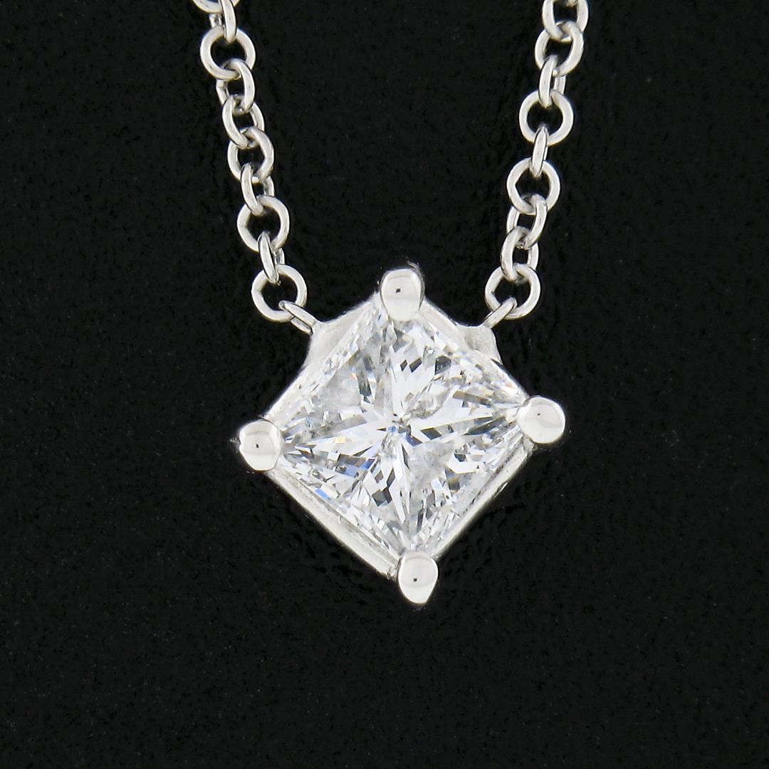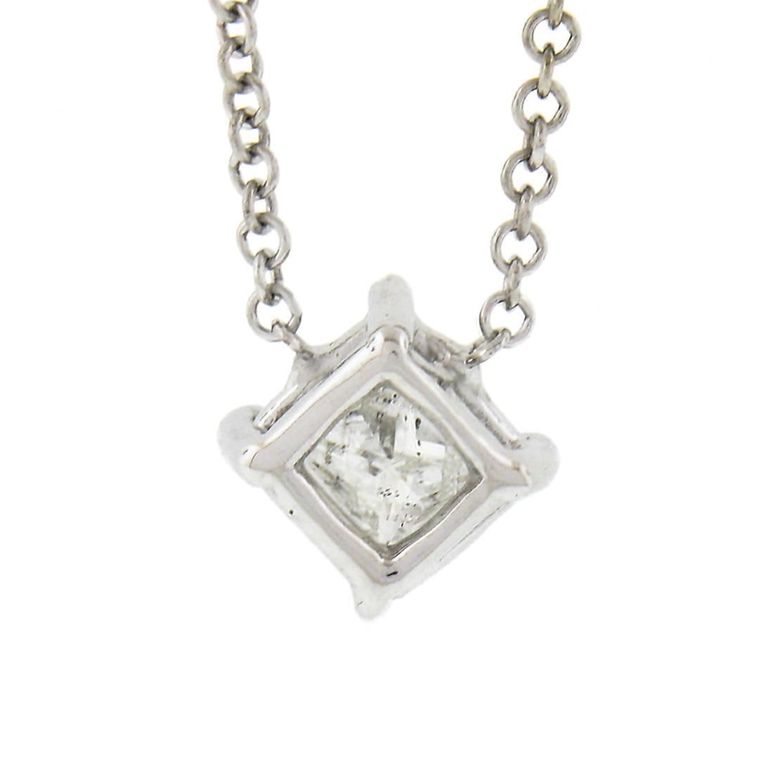 A new solid 14k white gold solitaire pendant necklace, with 1 princess cut natural diamond (F - I1 ; 0.41ct). Adjustable 16 and 18 inch cable link chain, 2.0 grams total weight, pendant measures 6.8x6.9mm.
