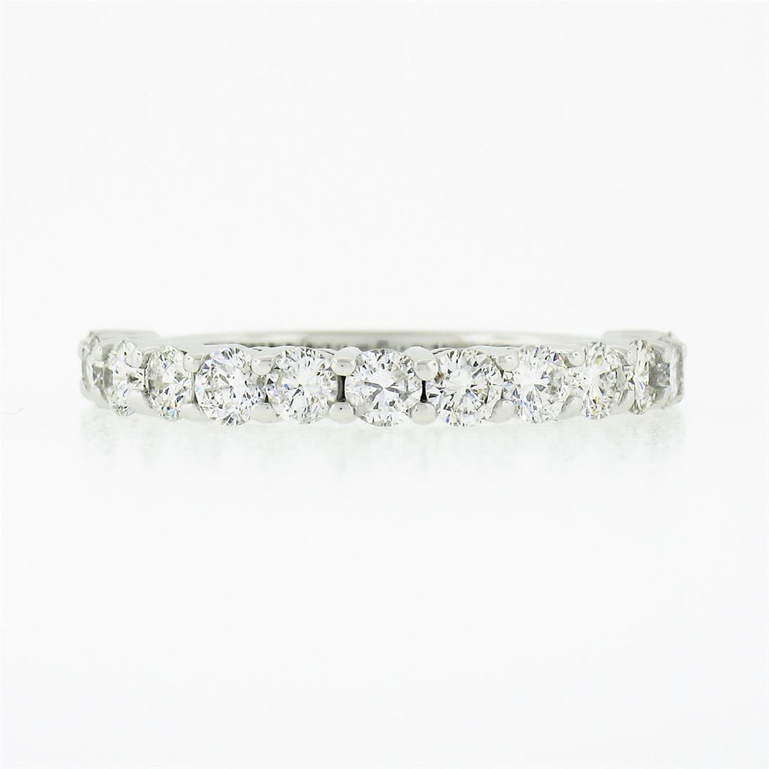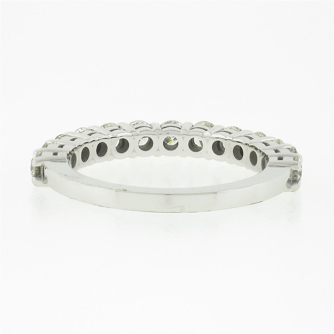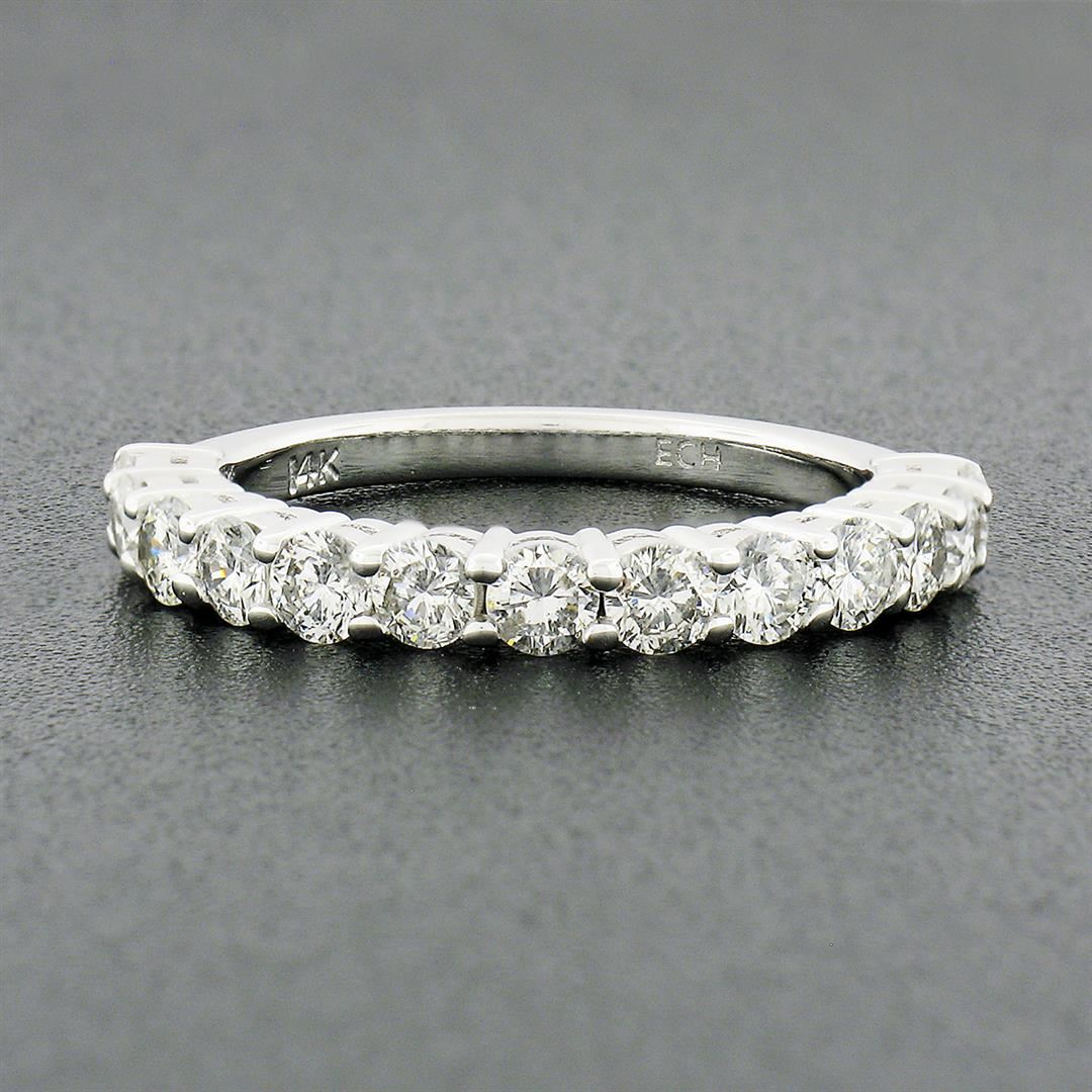 A new solid 14k white gold band ring, with 13 round brilliant cut natural diamonds (G/H - SI1/SI2 ; 1.14ctw). The ring is size 6.5, weighs a total of 3.14 grams, and measures 2.95mm wide.