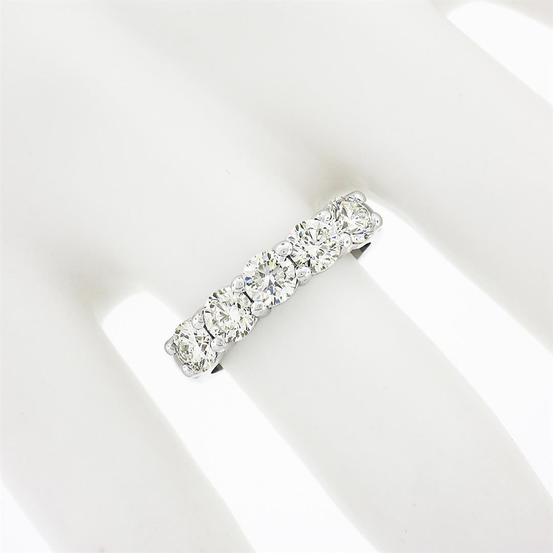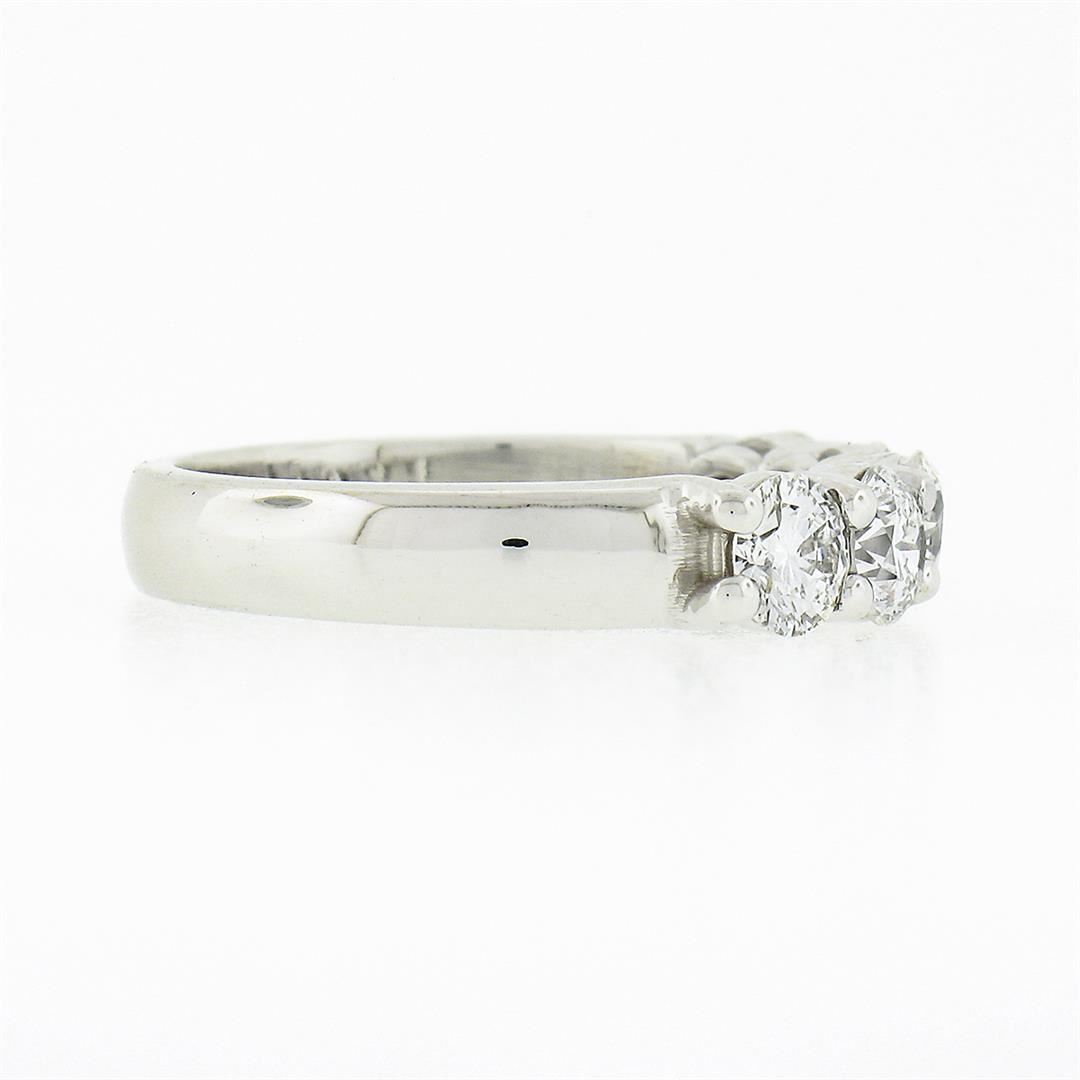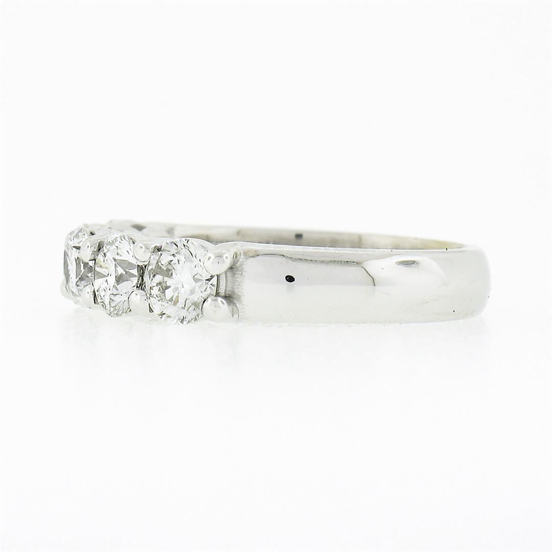 A new solid 14k white gold band ring, with 5 round brilliant cut natural diamonds (F/G - VS1/VS2 ; 1.38ctw). The ring is size 5.5, weighs a total of 4.39 grams, and measures 4.3mm wide.