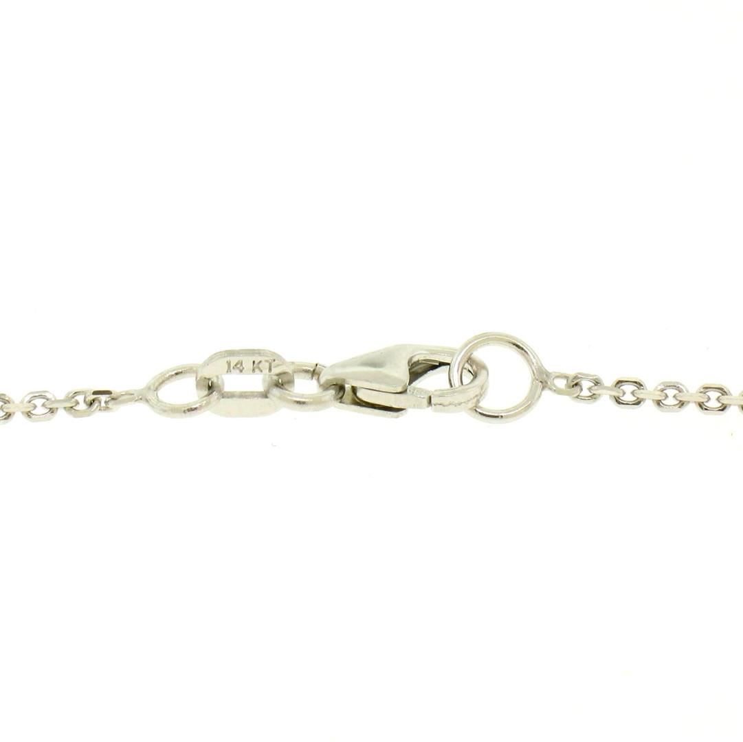 A new solid 14k white gold dangle pendant necklace, with 3 round brilliant cut natural diamonds (G/H- VS2; 0.67ctw). The pendant weighs a total of 3.6 grams, measures 23.3x7.65mm including the bail, and 17 inch fine cable link chain.