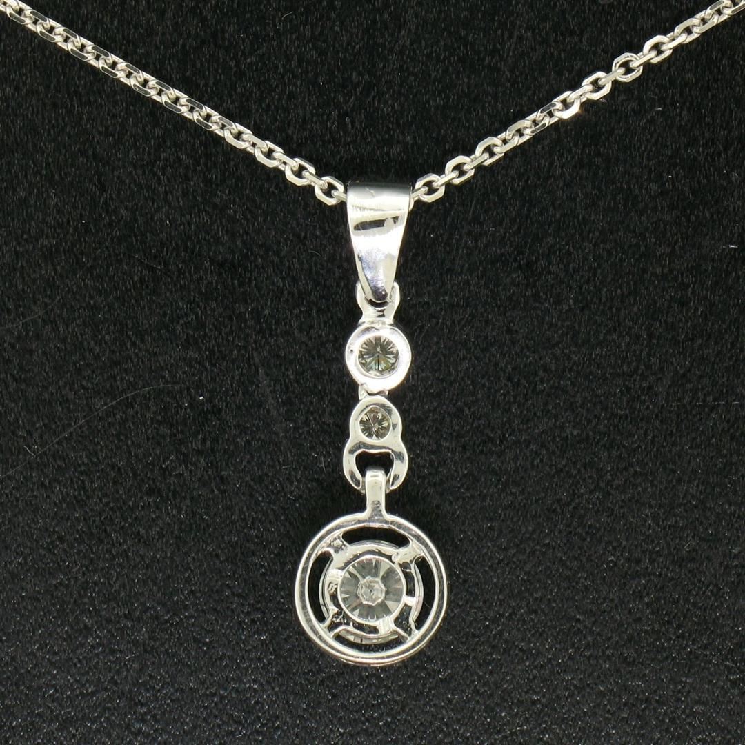A new solid 14k white gold dangle pendant necklace, with 3 round brilliant cut natural diamonds (G/H- VS2; 0.67ctw). The pendant weighs a total of 3.6 grams, measures 23.3x7.65mm including the bail, and 17 inch fine cable link chain.