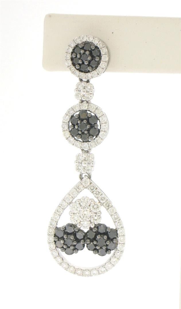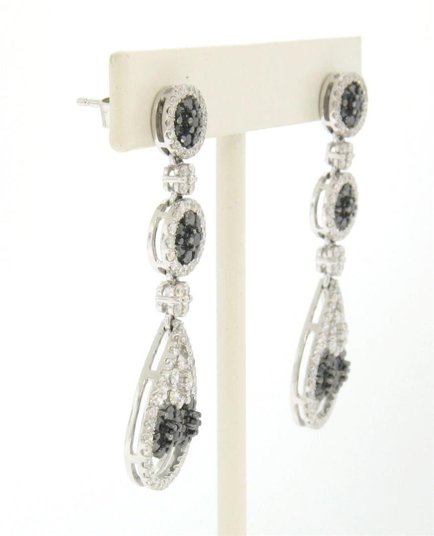 NEW 14k White Gold 3.74 ctw White and Black Diamond Long Dangle Drop Earrings