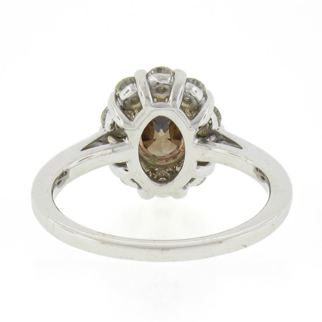 A new solid 18k white gold & 14k rose gold ring, with 1 GIA graded oval cut natural fancy brown diamond (VS2 ; 1.05ct), and a halo of 10 round brilliant cut natural diamonds (G/H - VS2/SI1 ; 0.65ctw). The ring is size 6.5, weighs a total of 4.46 grams, and measures 12.1mm wide. Comes with all original relevant certifications.