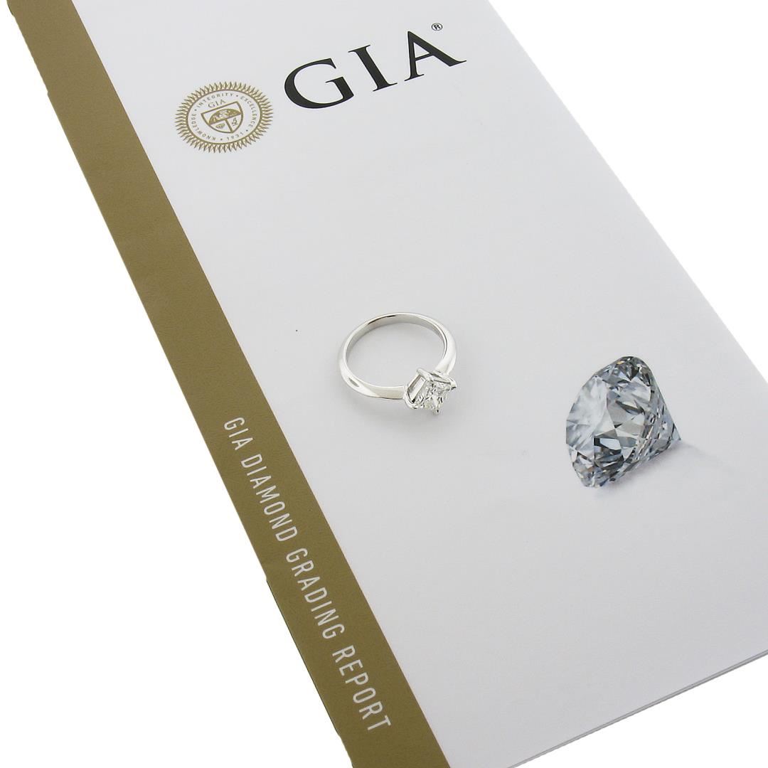 A new solid 18k white gold soliatire engagement ring, featuring 1 GIA graded princess cut natural diamond (I - SI1 ; 1.10ct). The ring is size 6.5, weighs a total of 3.12 grams, and measures 9.3mm wide. Comes with all original relevant certifications.