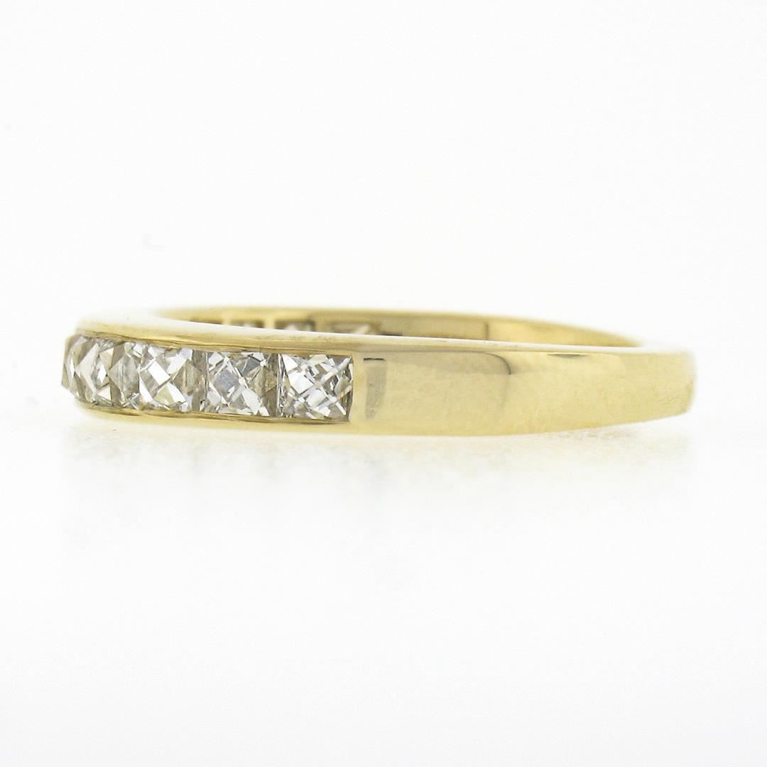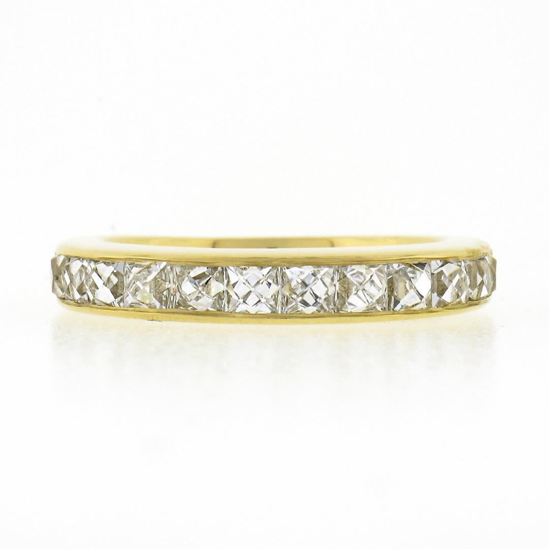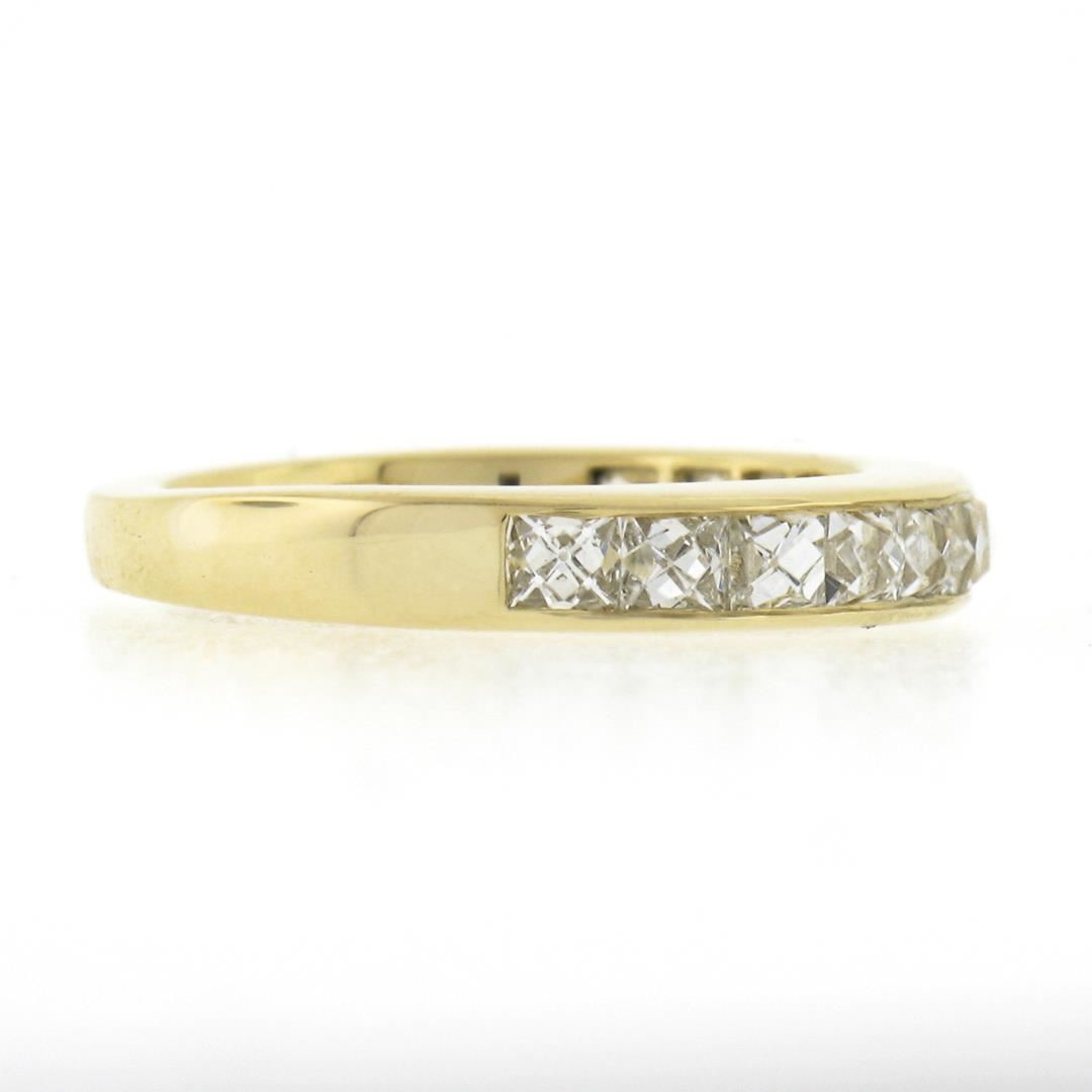 A new solid 18k yellow gold stack band ring, with 12 square french cut natural diamonds (H/I - VVS2/VS1 ; 2.0ctw). The ring is size 6.0, weighs a total of 4.47 grams, and measures 3.60mm wide.