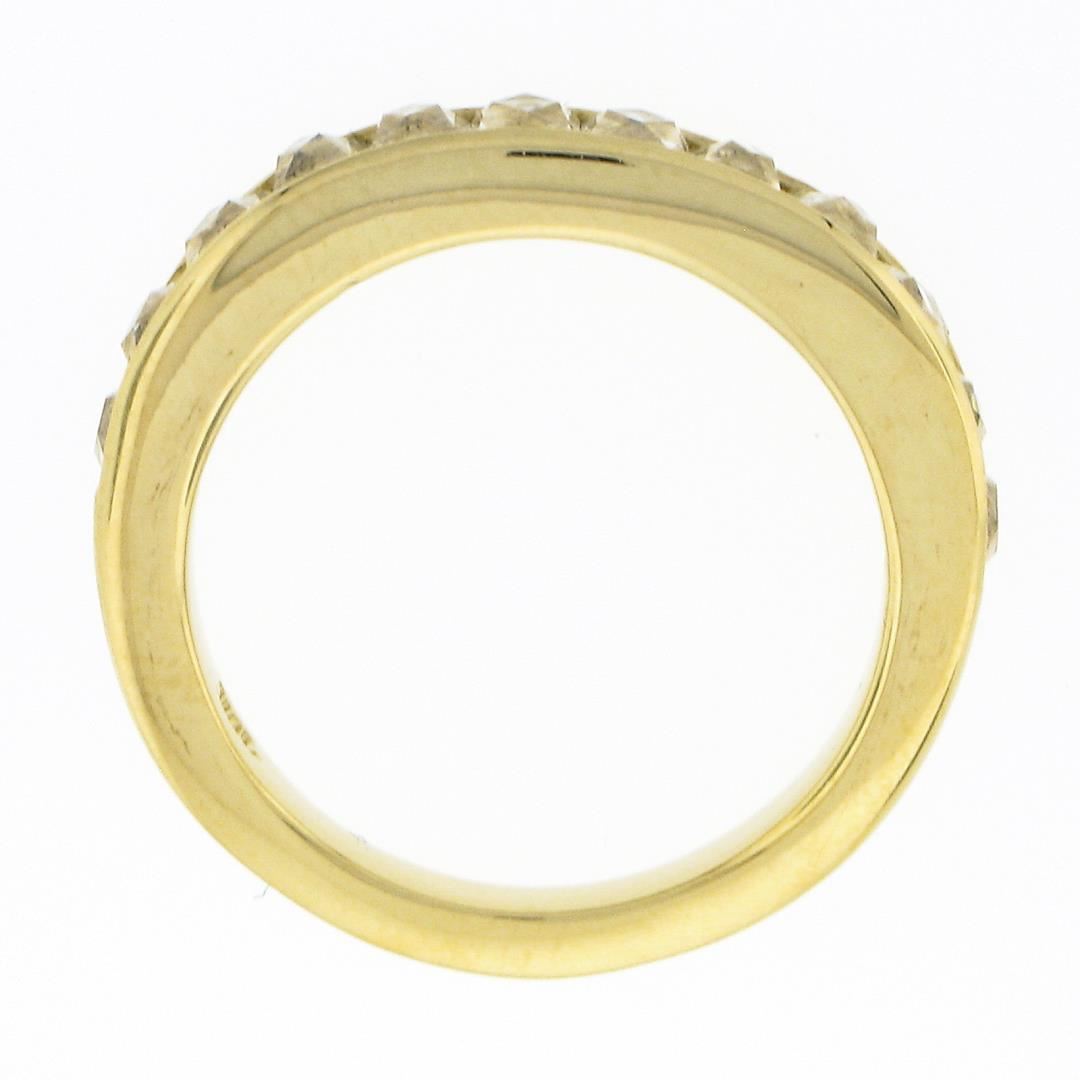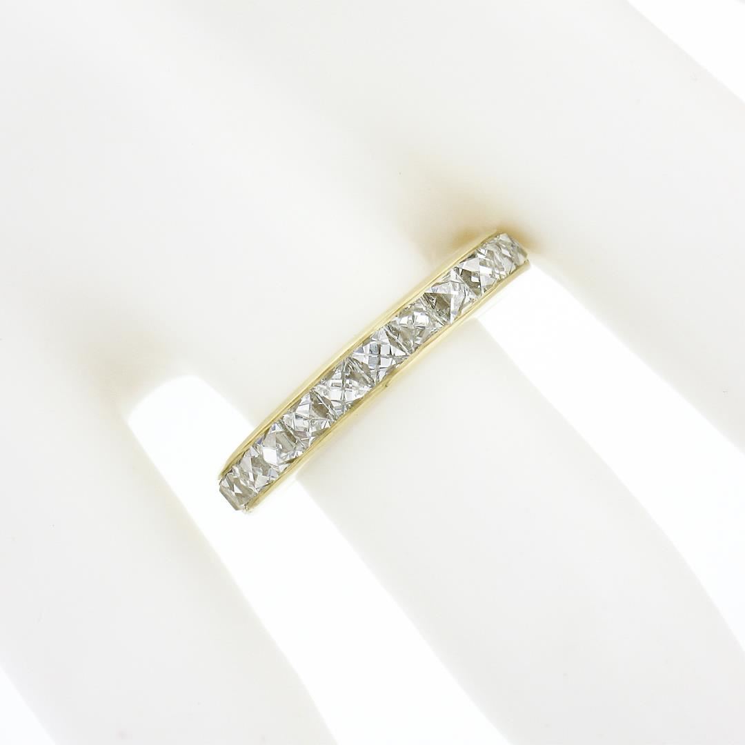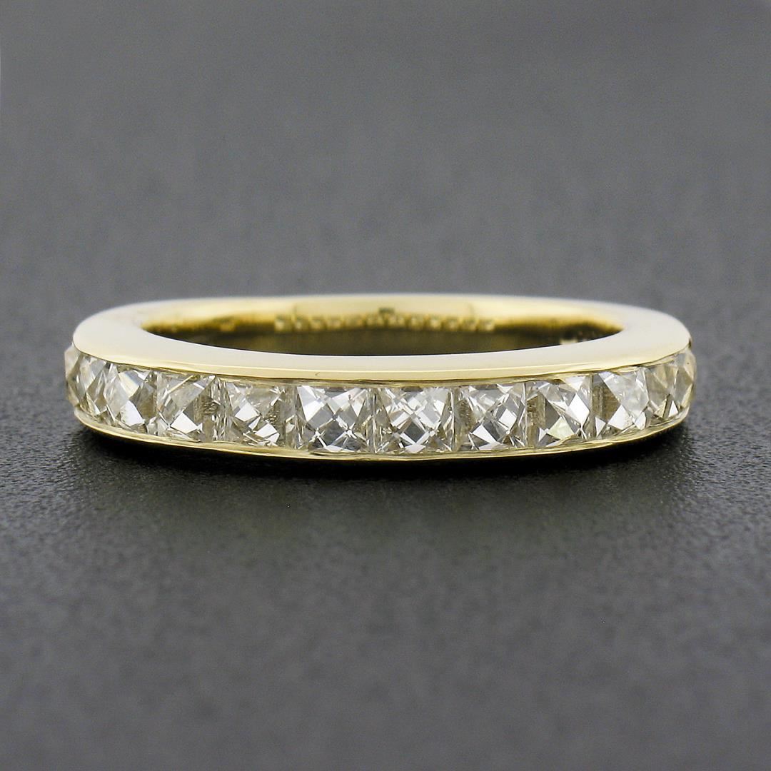 A new solid 18k yellow gold stack band ring, with 12 square french cut natural diamonds (H/I - VVS2/VS1 ; 2.0ctw). The ring is size 6.0, weighs a total of 4.47 grams, and measures 3.60mm wide.