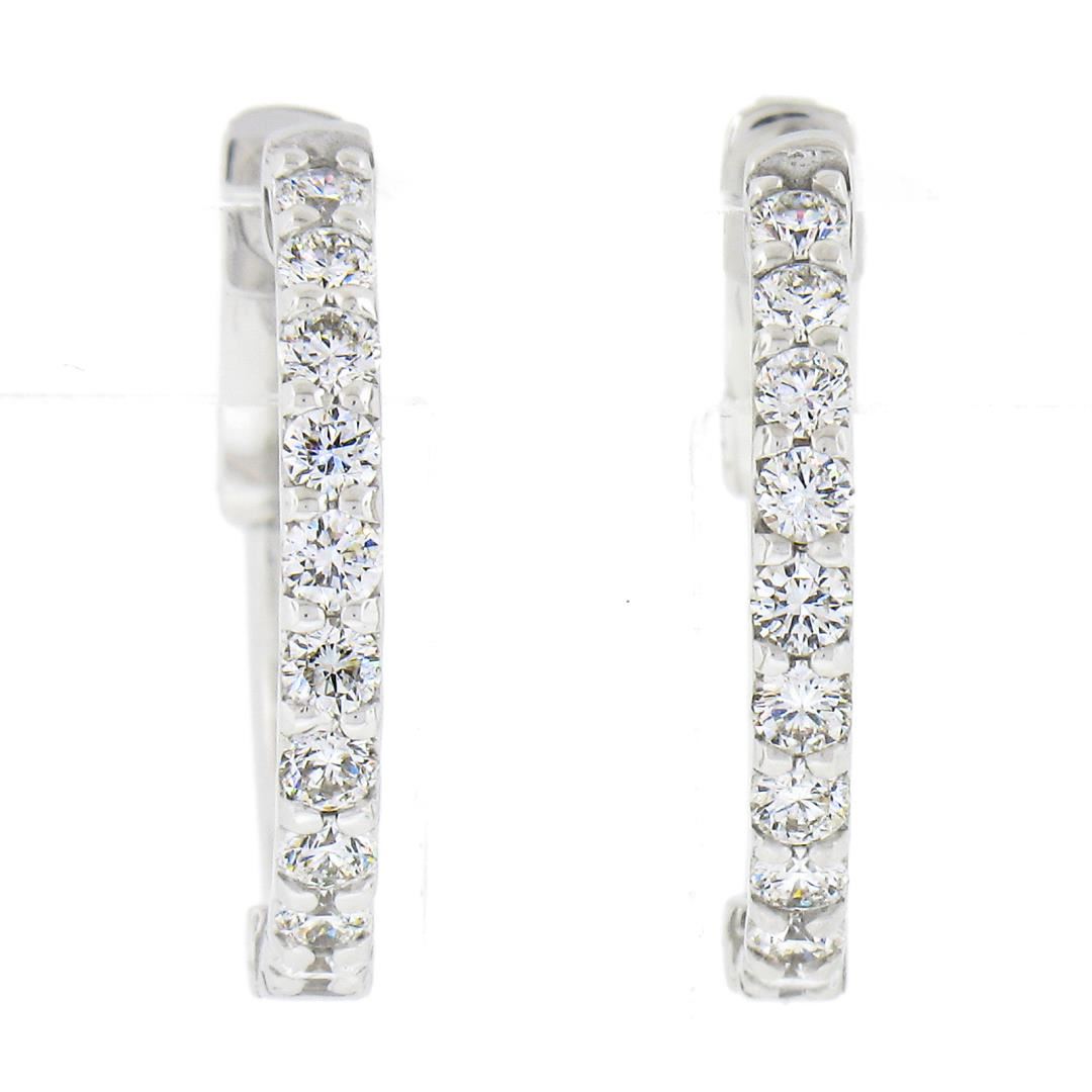 A new solid 14k white gold hoop earrings, with 20 round brilliant cut natural diamonds (F/G - VS1/VS2 ; 0.60ctw). The earrings measure approximately 18x2mm and weigh a total of 4.01 grams.