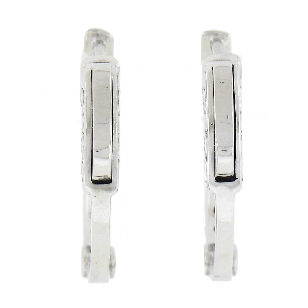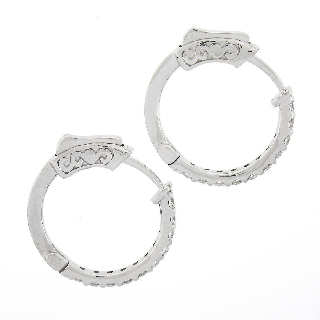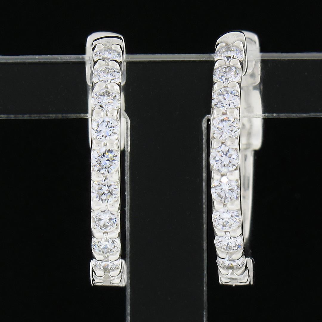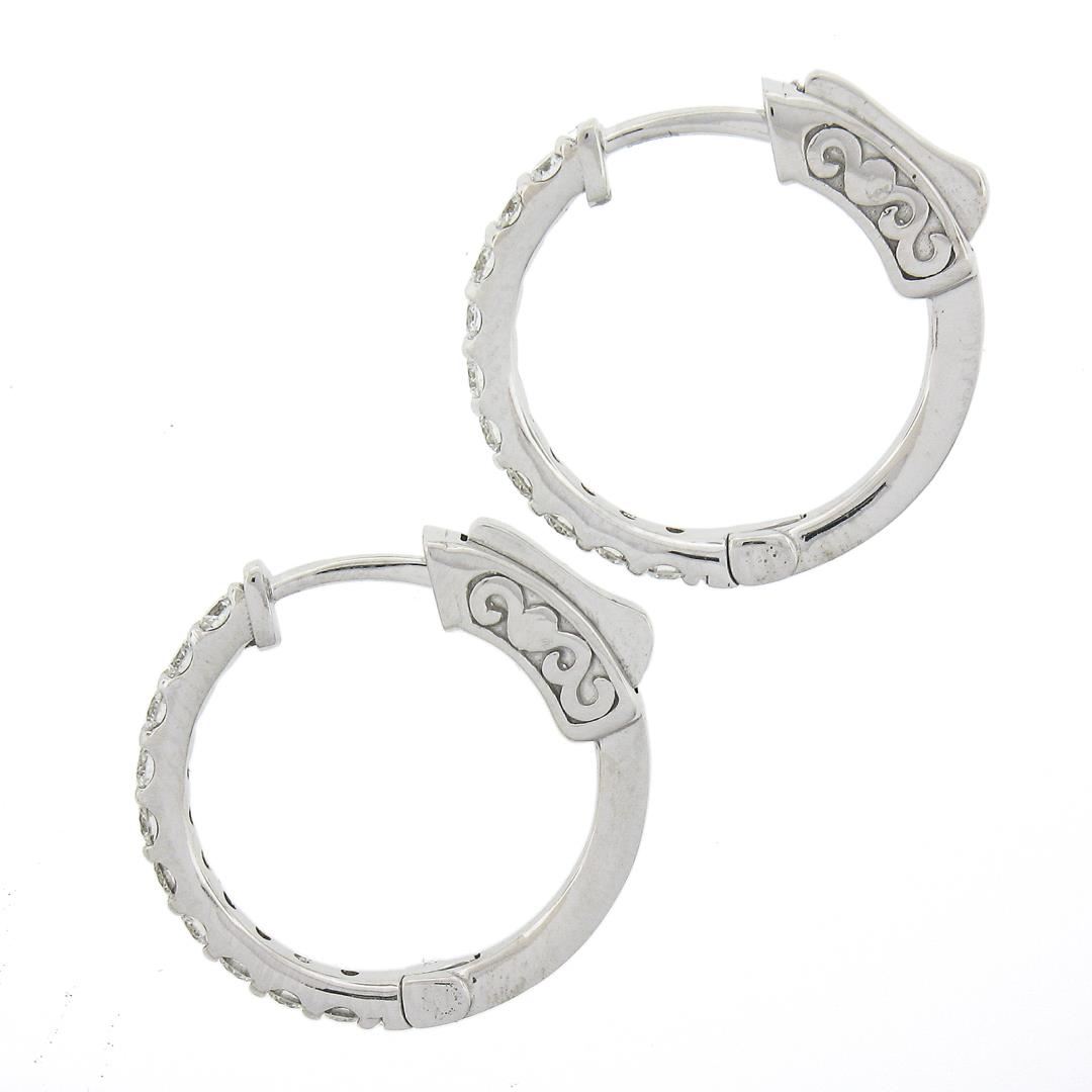 A new solid 14k white gold hoop earrings, with 20 round brilliant cut natural diamonds (F/G - VS1/VS2 ; 0.60ctw). The earrings measure approximately 18x2mm and weigh a total of 4.01 grams.