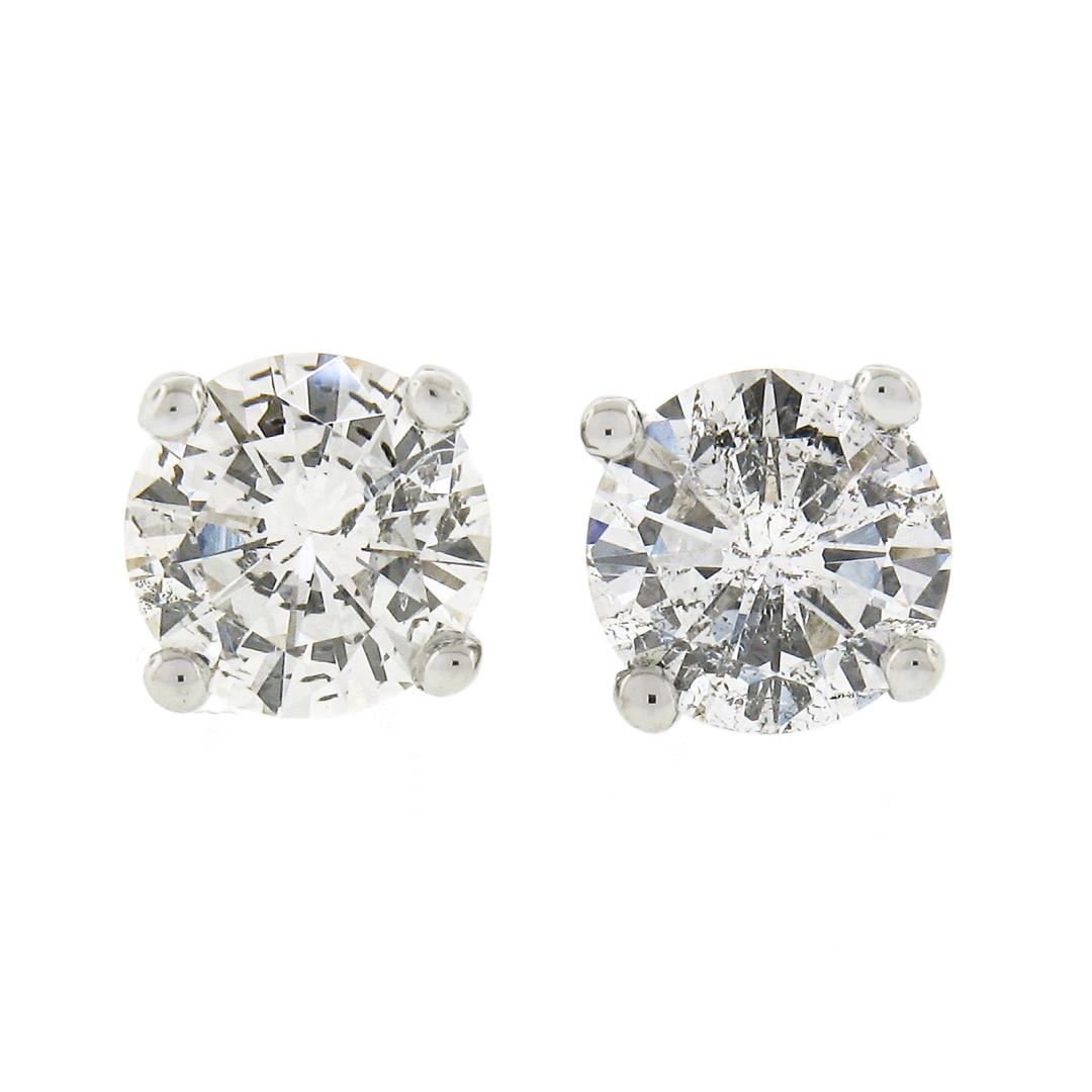 A new solid 14k white gold stud earrings, with 2 round cut natural diamonds (H-I - I1-I2 ; 0.60ctw). The earrings measure approximately 5.40mm in diamater and weigh a total of 0.90 grams.